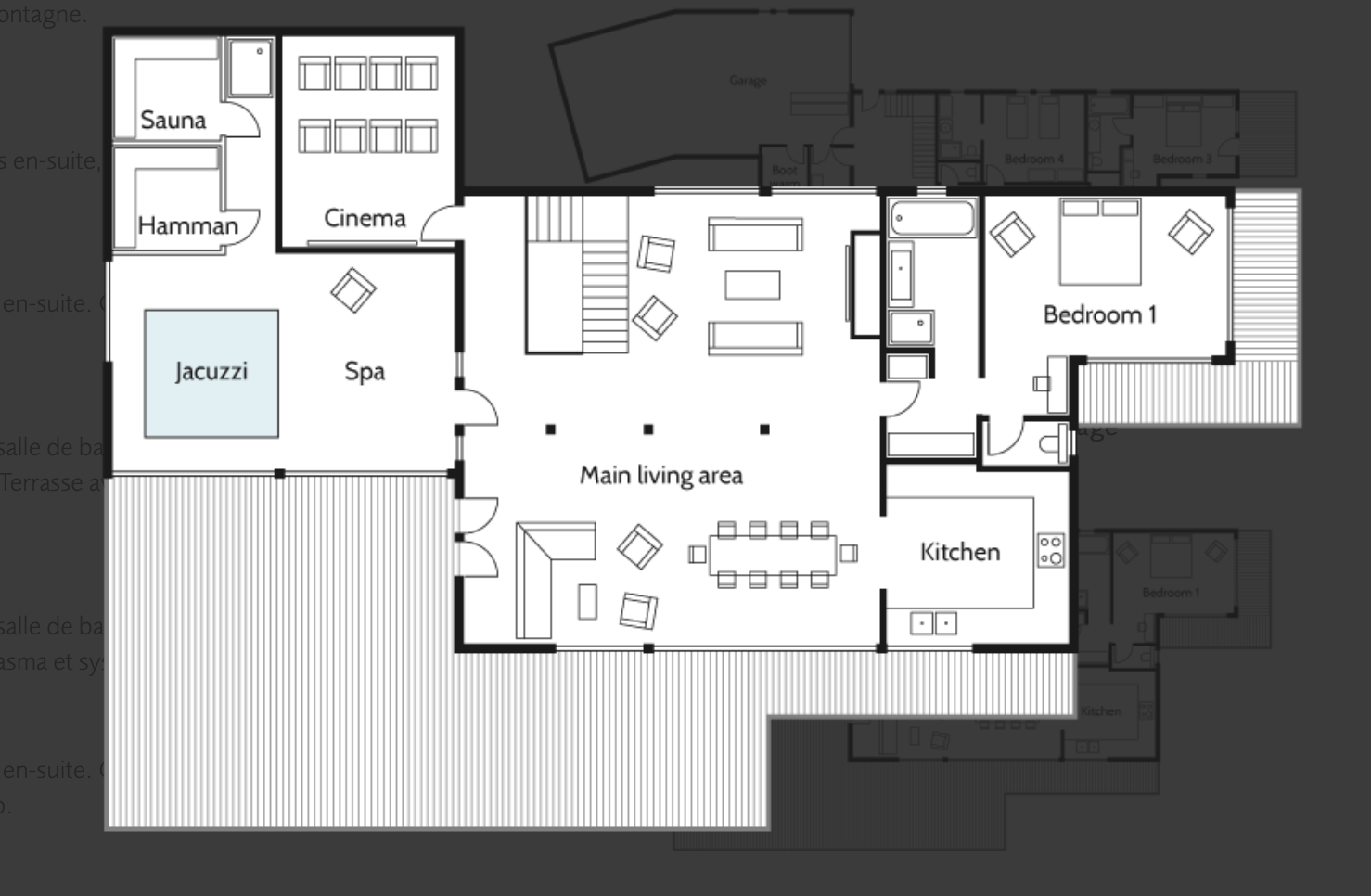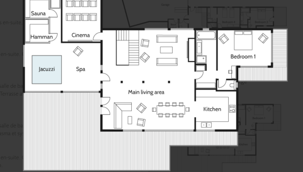 En hiver, le Chalet AMA devient le chalet de montagne par excellence. Il dispose de tout le nécessaire après une belle journée sur les pistes. Profitez du Spa tout équipé, avec son hammam, sauna, salle de massage, jacuzzi intérieur et extérieur. Pour une détente absolue, savourez un verre de vin au coin du feu pendant que les enfants regardent un dessin animé ou un film dans la salle de cinéma.
