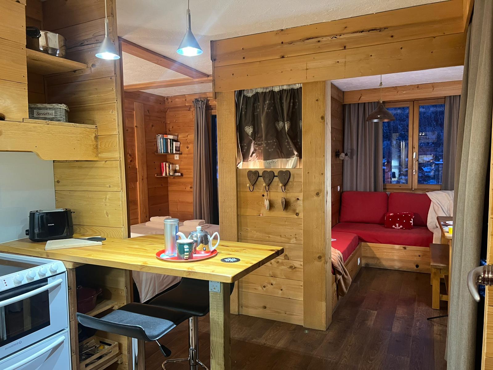 Après une journée de randonnée, de ski ou de découvertes, relaxez-vous dans ce cocon accueillant, où chaque détail a été pensé pour votre confort : coin nuit douillet, kitchenette équipée, espace repas convivial.