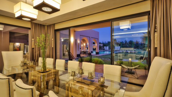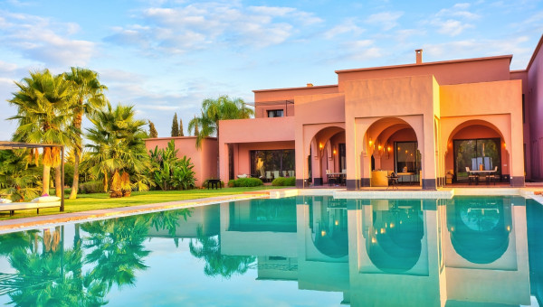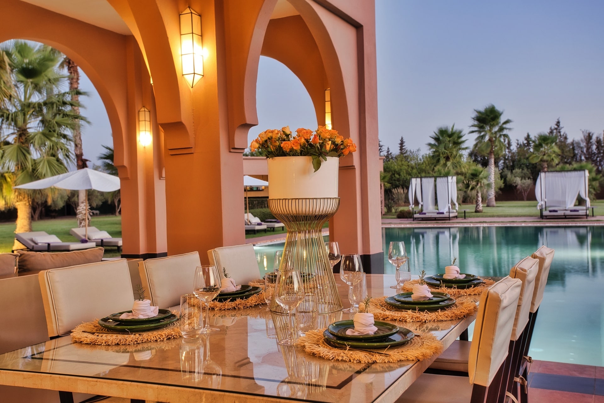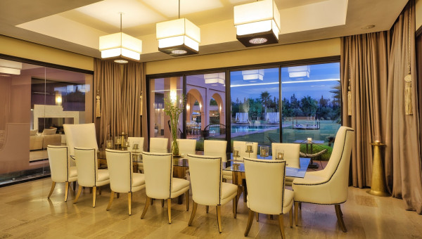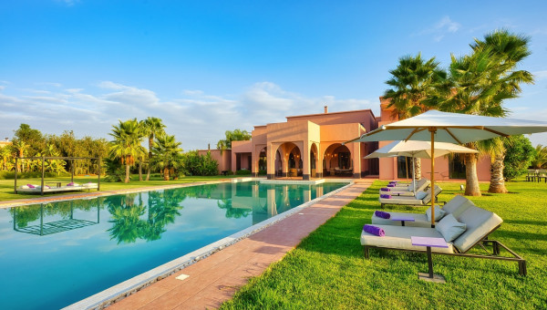 Bienvenue au Domaine Alba, votre oasis de luxe à Marrakech, où deux somptueuses villas vous attendent, l’une pouvant accueillir jusqu’à 8 personnes et l’autre jusqu’à 12, pour un total de 20 invités (avec la possibilité d’accueillir 5 personnes supplémentaires, veuillez nous contacter pour plus de détails). Niché sur un domaine de 1 900 m2, au cœur de 1,7 hectare de verdure luxuriante, ce havre de paix offre une architecture arabo-andalouse et une vue à couper le souffle sur l’Atlas.