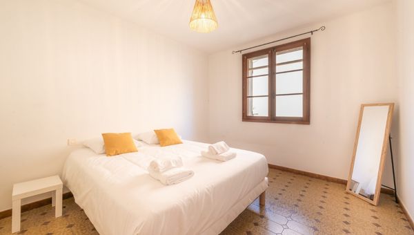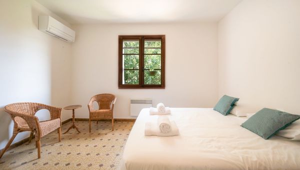 Quatrième chambre : lit queen-size (160x200), dressing dans le couloir, petite table et chaise, climatisation.