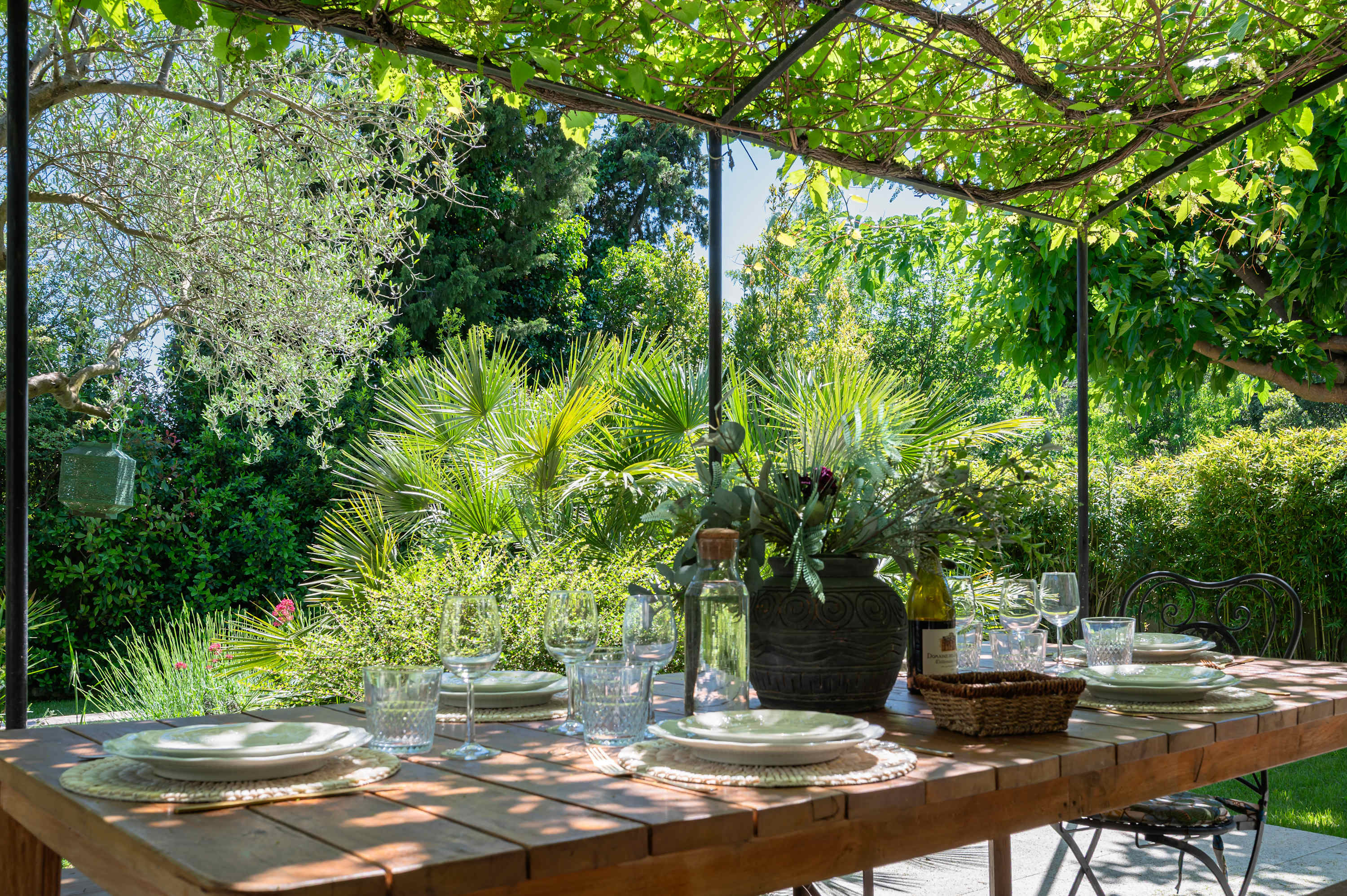 le Mas avec deux suites et deux chambres, cuisine séjour … donnant sur la piscine, et la dépendance avec une chambre, salle d’eau, salon, cuisine … donnant sur un petit jardin communiquant.