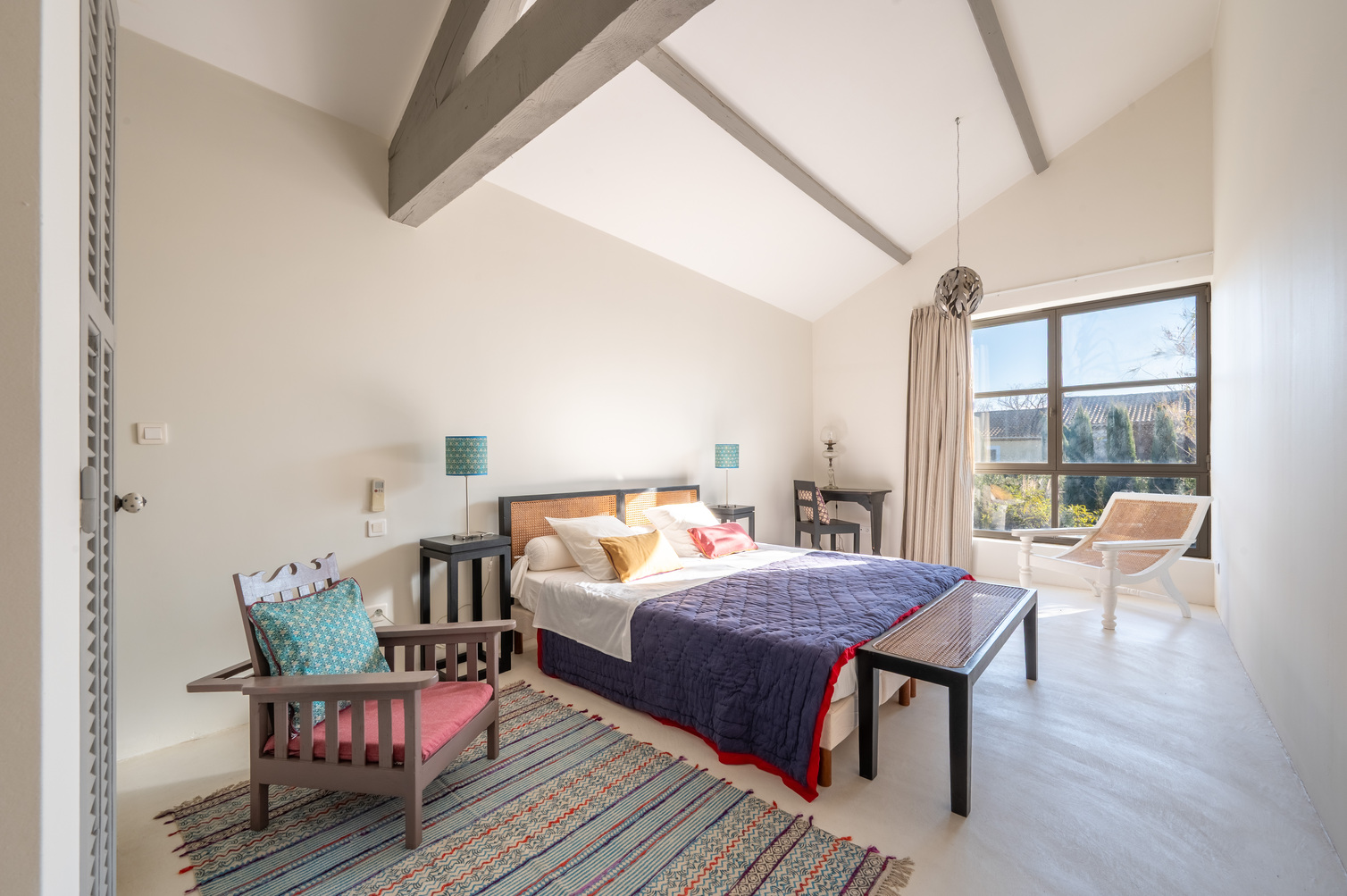 Issu d’un grand mas provençal, l’espace que vous occuperez a été entièrement rénové avec soin pour offrir un confort optimal ; depuis les extérieurs, vous profiterez de la vue sur la partie ancienne, avec ses charmants volets bleus, restée inoccupée pendant votre séjour afin de garantir calme et intimité.