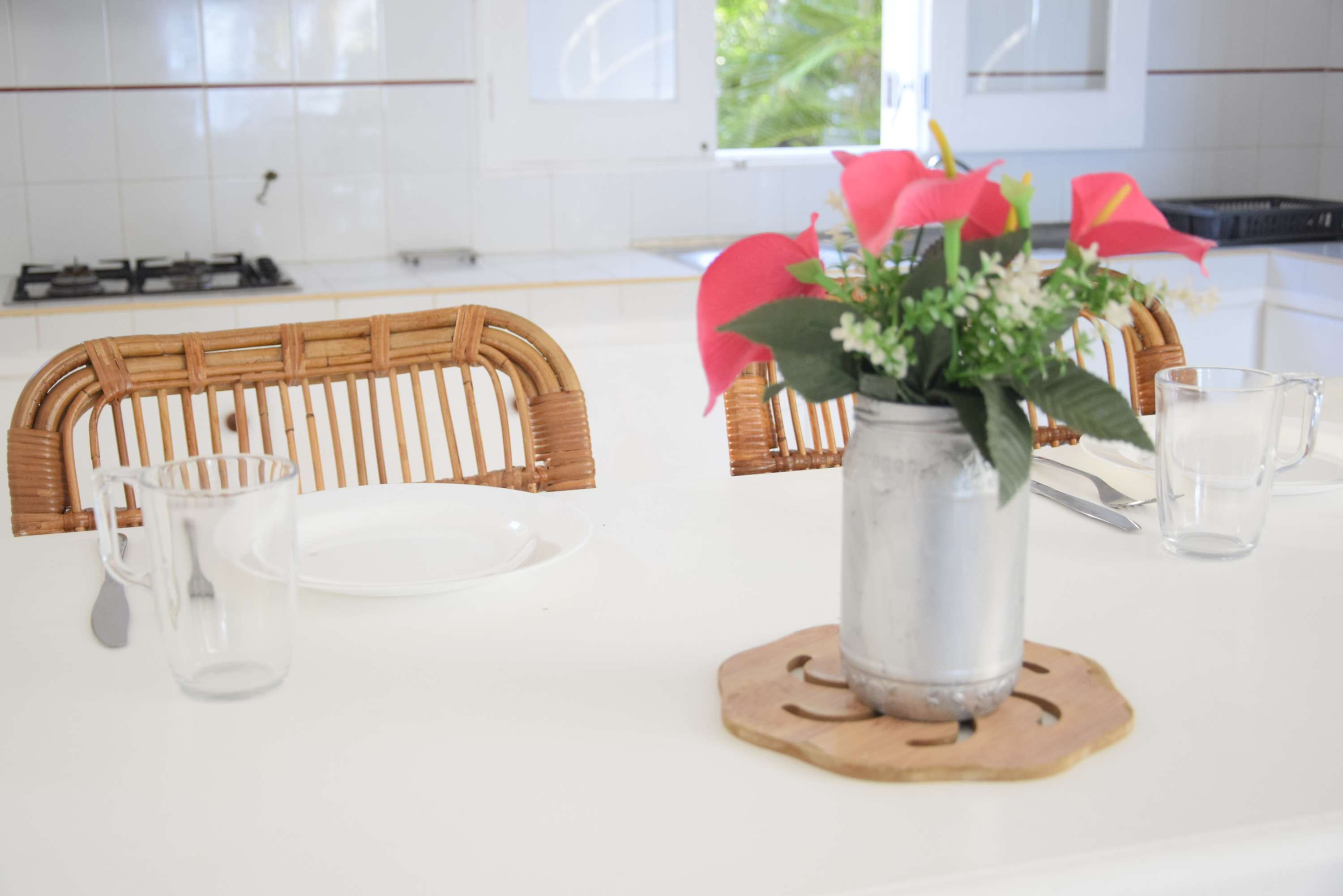 Dès l’entrée vous vous sentirez comme chez vous. Un grand salon d’une décoration épurée et une cuisine ouverte entièrement équipée avec : vaisselle, chaise haute pour enfants, table à manger, machine à café, produits ménagers, plaque de cuisson, ustensiles de cuisine, bouilloire électrique, lave-linge, micro-ondes et réfrigérateur seront à votre disposition durant votre séjour. Vous pourrez concocter de bons petits plats ou faire appel à un cuisinier local à la demande. Ces larges espaces s´ouvrent sur une terrasse spacieuse et sa salle à manger extérieure.