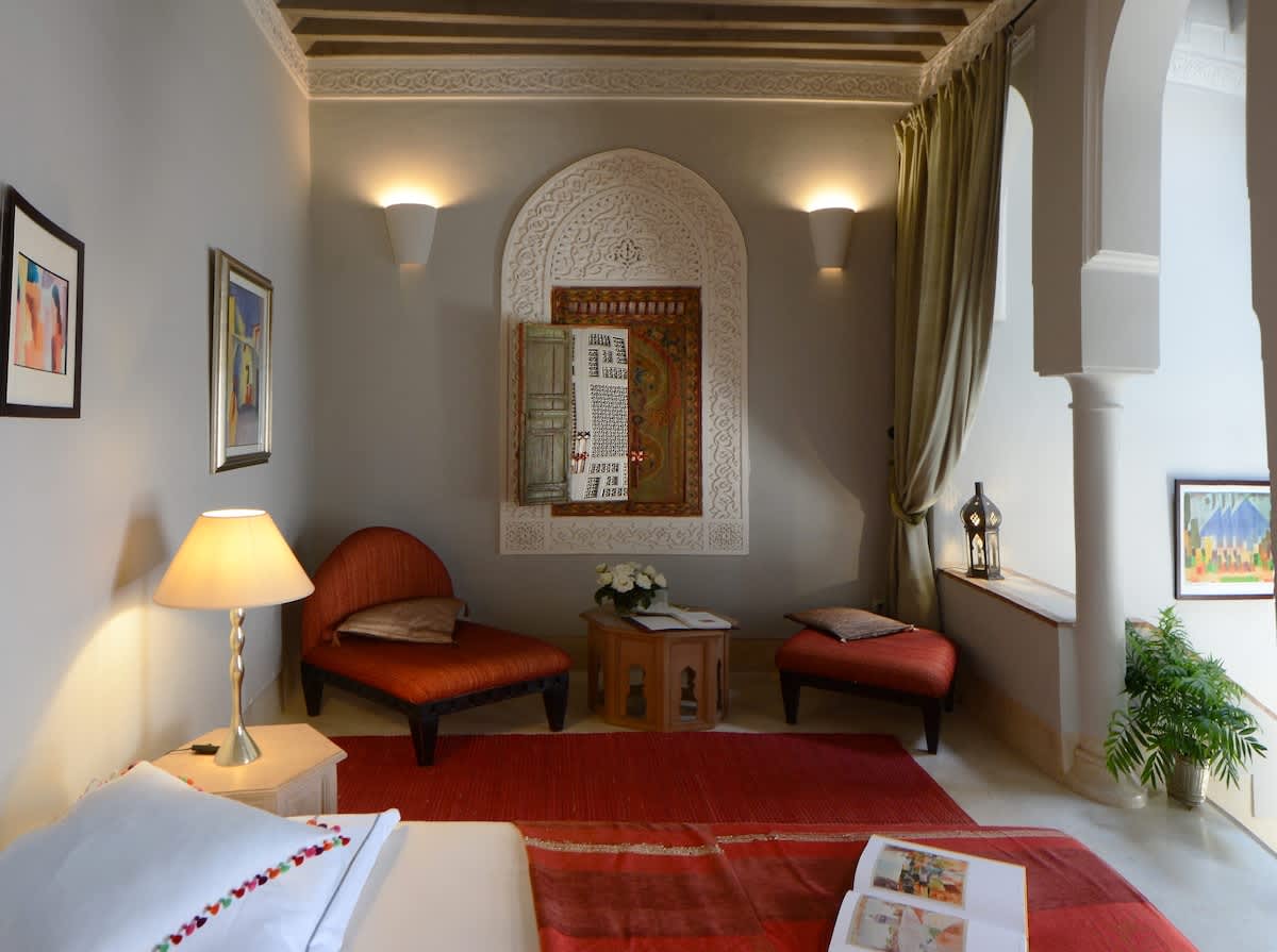 La suite n°3 est située au 1er étage du riad, elle possède un salon privé en loggia.