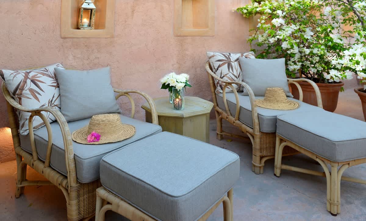 Les terrasses sont un lieu mythique propre au délassement. Les salons, sous la pergola ou près des bougainvilliers, vous permettent de tout oublier tout en écoutant, en sourdine, les bruits de la médina et l’appel du muezzin à l’heure de la prière. Vous choisirez de prendre l’apéritif sous les étoiles ou un dîner aux chandelles entre amis ou en tête-à-tête.