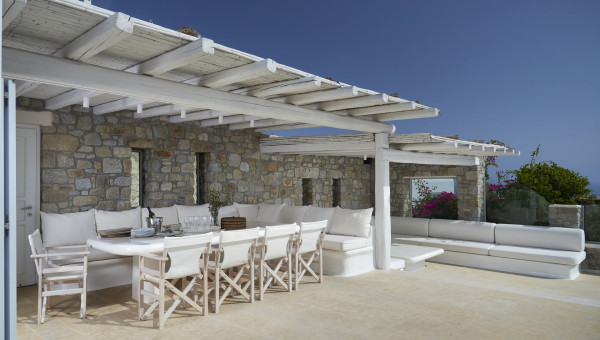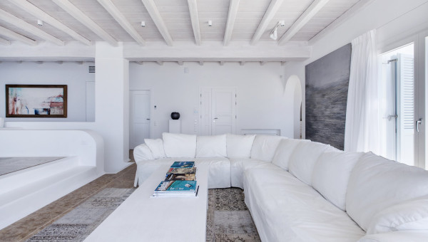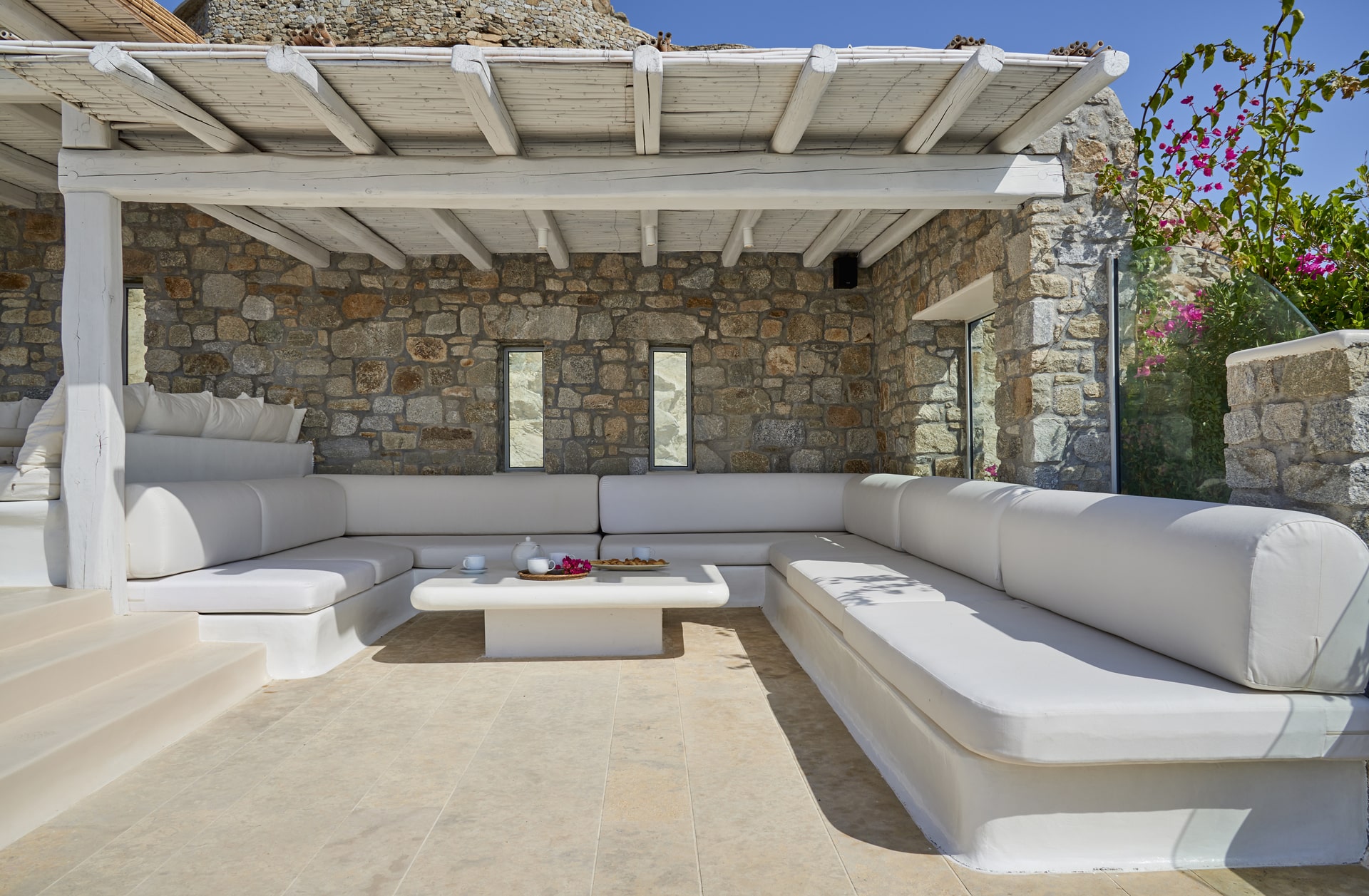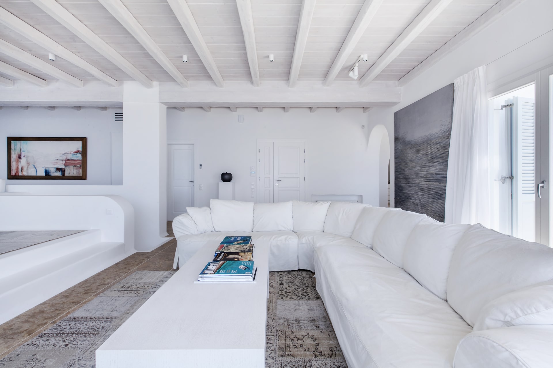 Chaque coin de la villa, du salon spacieux aux espaces extérieurs avec vue sur la mer, est conçu pour offrir un confort exceptionnel, faisant de la Villa Ambrosia une escapade de rêve à Mykonos.