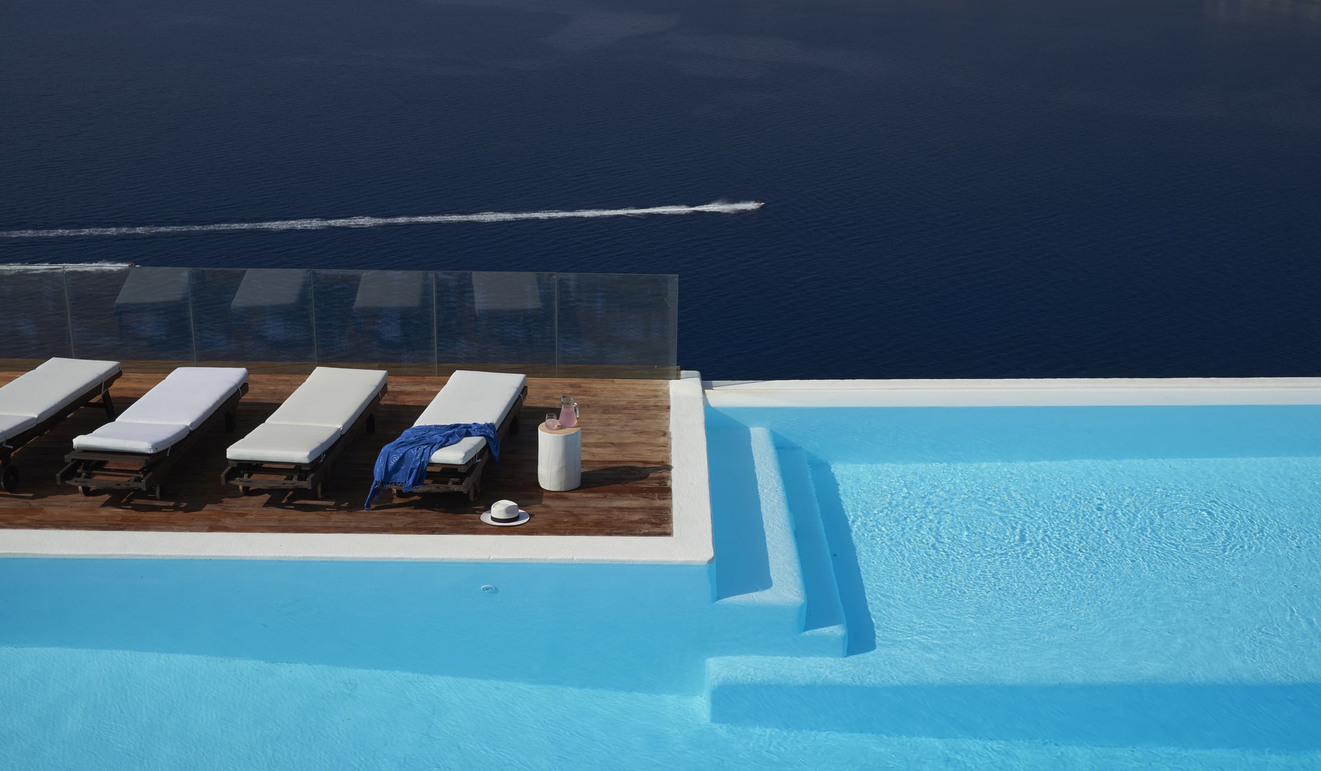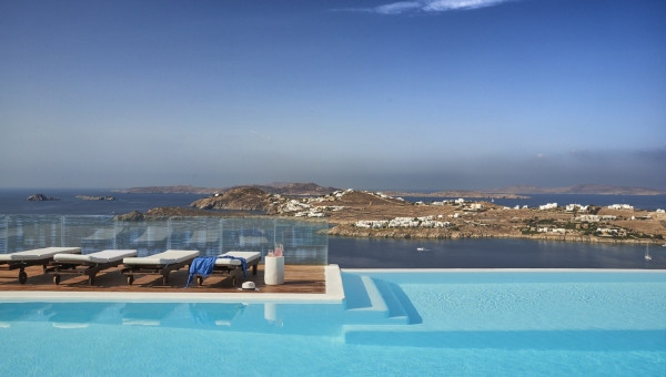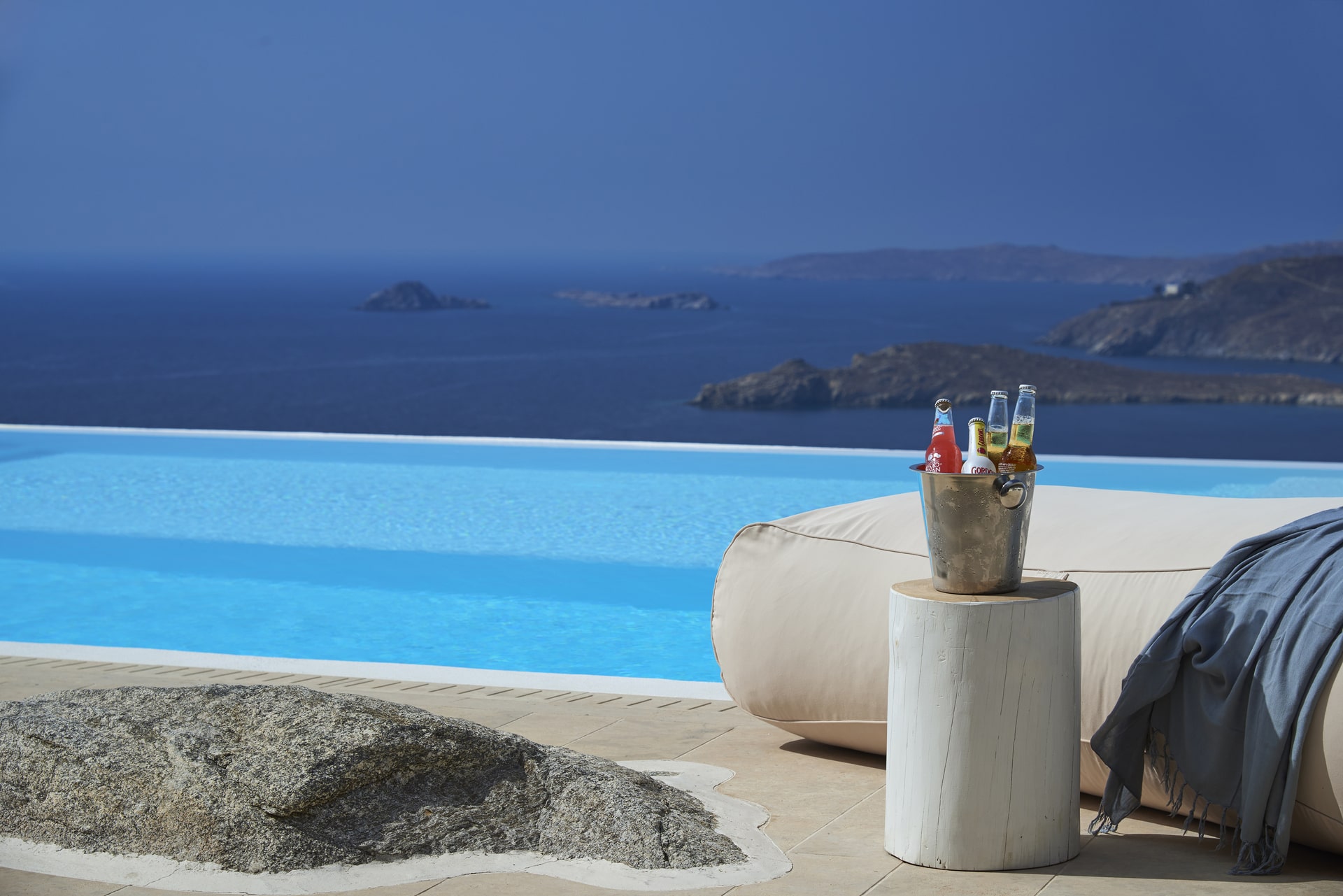 En rentrant à la villa, détendez-vous au bord de la piscine à débordement, où la vue sur la mer et le coucher de soleil sur la presqu’île de Kalafatis au loin s’offrent à vous.