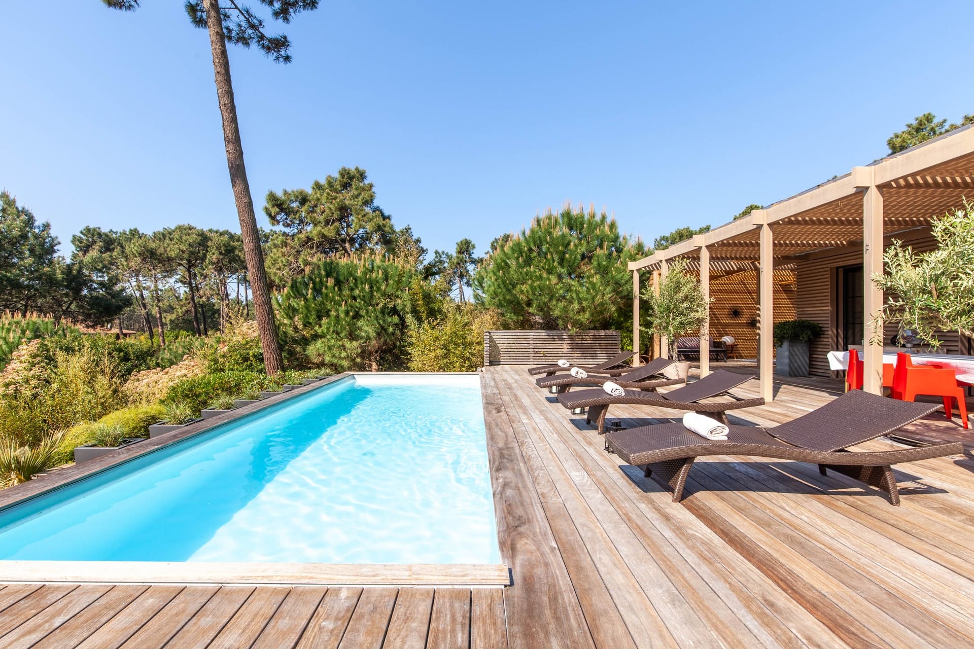 Que vous souhaitiez vous prélasser au soleil près de la piscine, concocter des festins en plein air, ou simplement vous détendre dans l’élégance décontractée des espaces intérieurs, la Villa Barbara vous invite à plonger dans une escapade luxueuse au cœur du Cap Ferret.