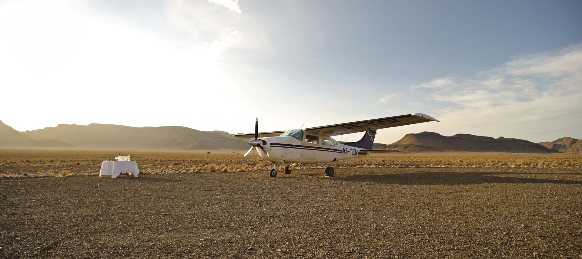 À votre arrivée à l’aéroport international Husea Kutako de Windhoek, vous embarquez à bord d’un avion taxi pour un vol spectaculaire d’1h30. Vous serez émerveillé par la variété des déserts namibiens aux couleurs éclatantes.
