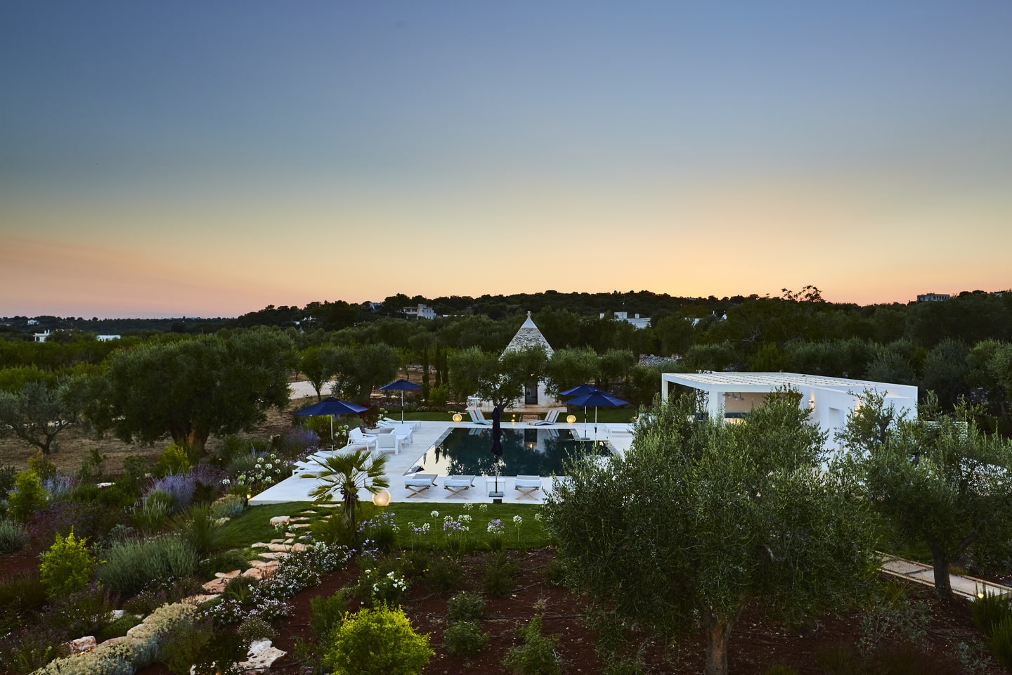 Au cœur du sud de l’Italie, dans la région enchanteresse des Pouilles, découvrez l’extraordinaire domaine de la Villa Blanche, où les trulli émaillent le paysage pittoresque tels des joyaux blancs.