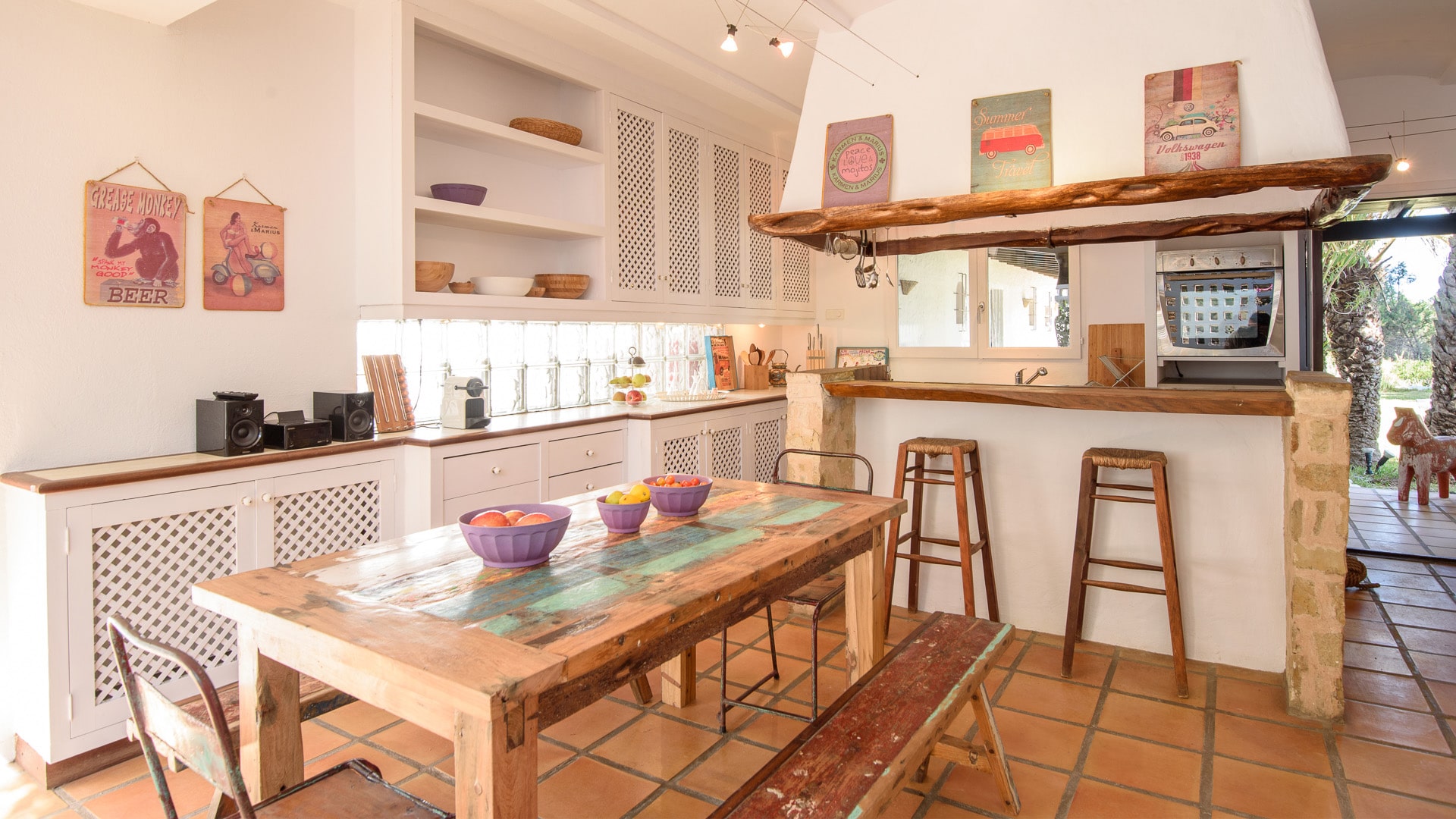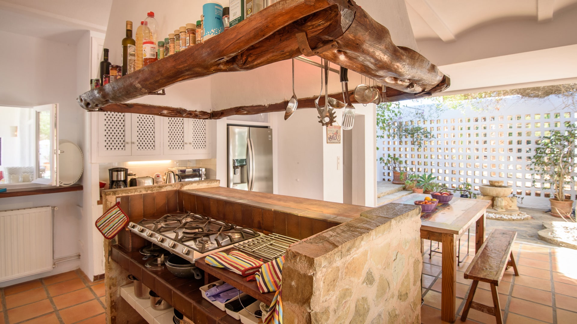 La cuisine de la Villa Calabassa se présente comme un chef-d’œuvre, harmonieusement équipée pour allier le confort moderne à la praticité.