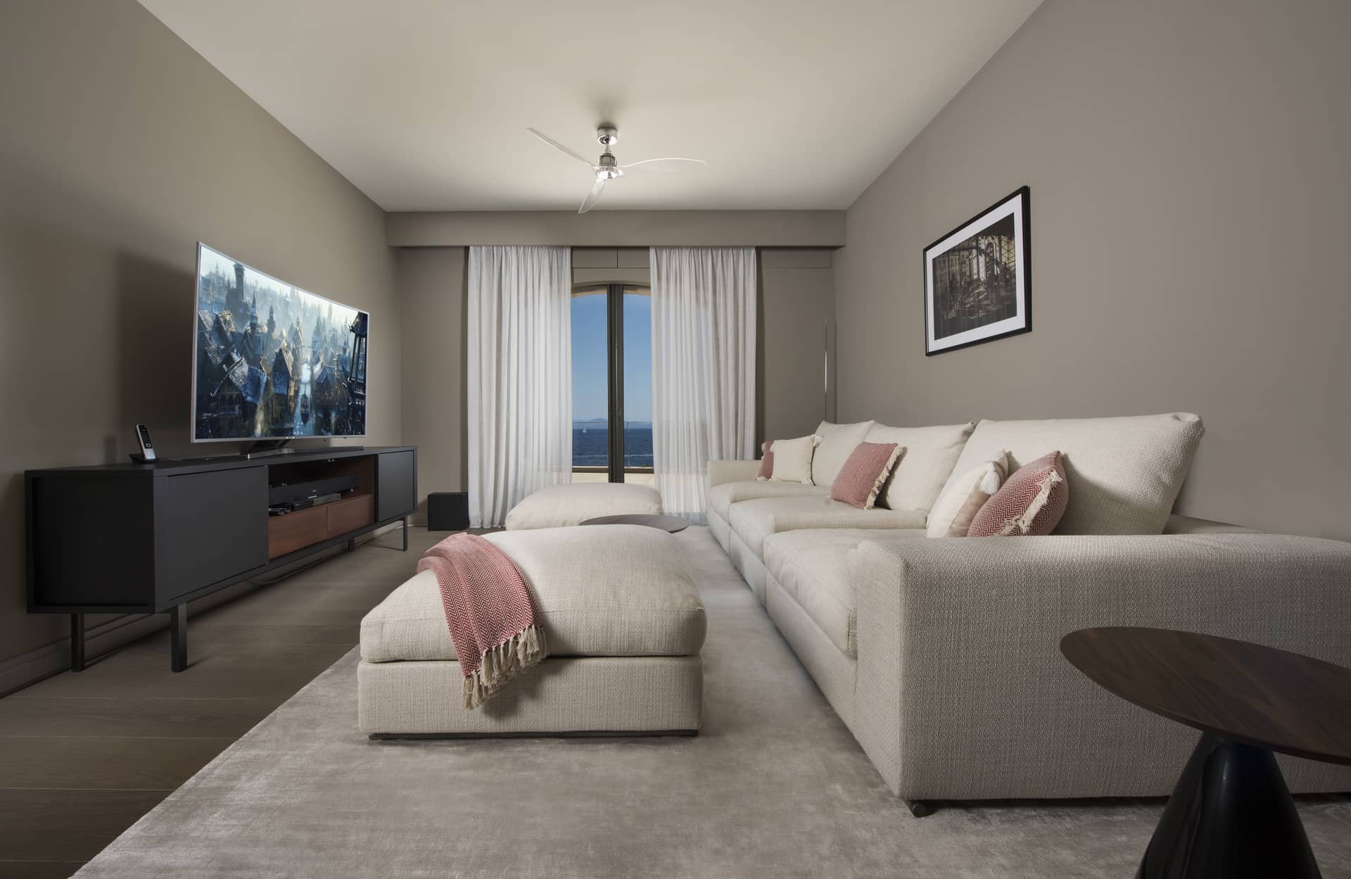 Pour les plus actifs, une salle de sport entièrement équipée permet de garder la forme avant une baignade ou une sieste au soleil. La villa dispose également d’un système d’alarme, de la climatisation intégrale, du chauffage central et du wifi haut débit, assurant confort et sérénité tout au long du séjour.