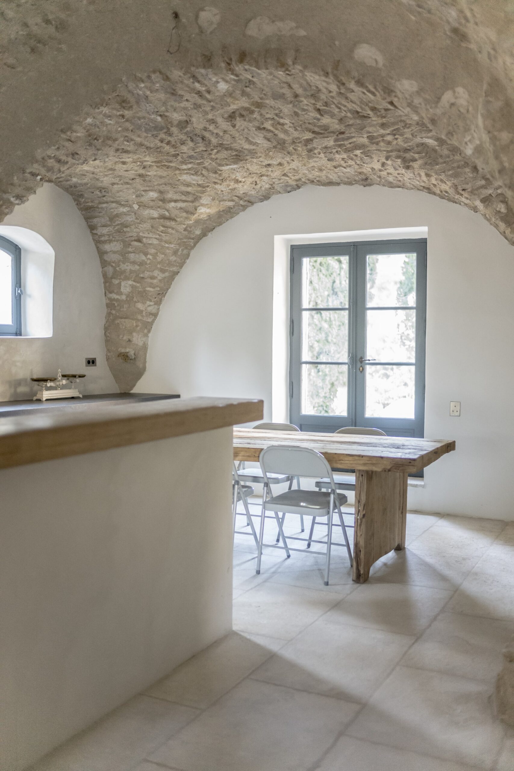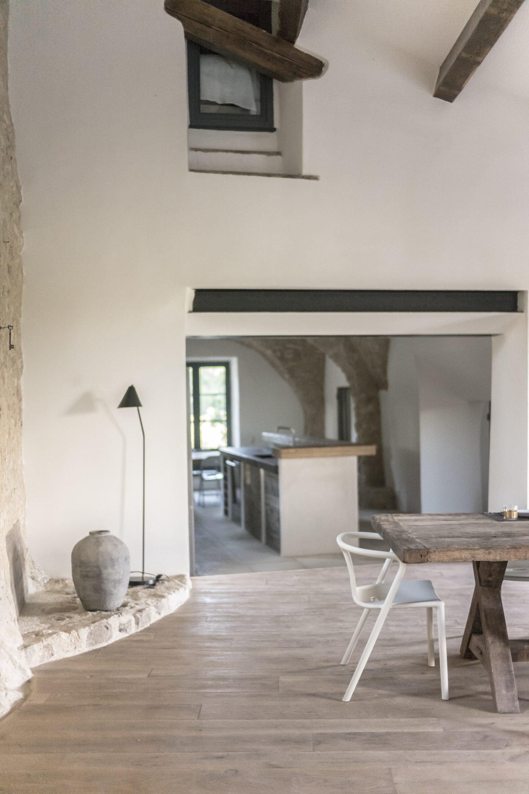 À l’intérieur, découvrez un mariage parfait entre les éléments d’antan et une décoration moderne. Les voûtes en pierre de la cuisine, les poutres apparentes, le plafond cathédral et la grande cheminée en briques du salon créent une atmosphère chaleureuse et accueillante.