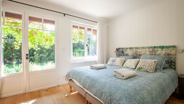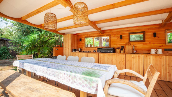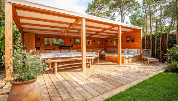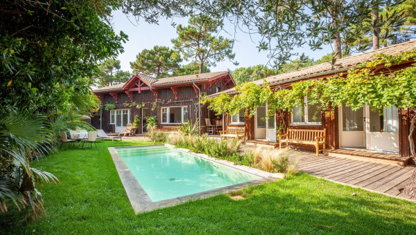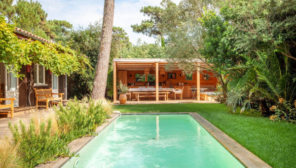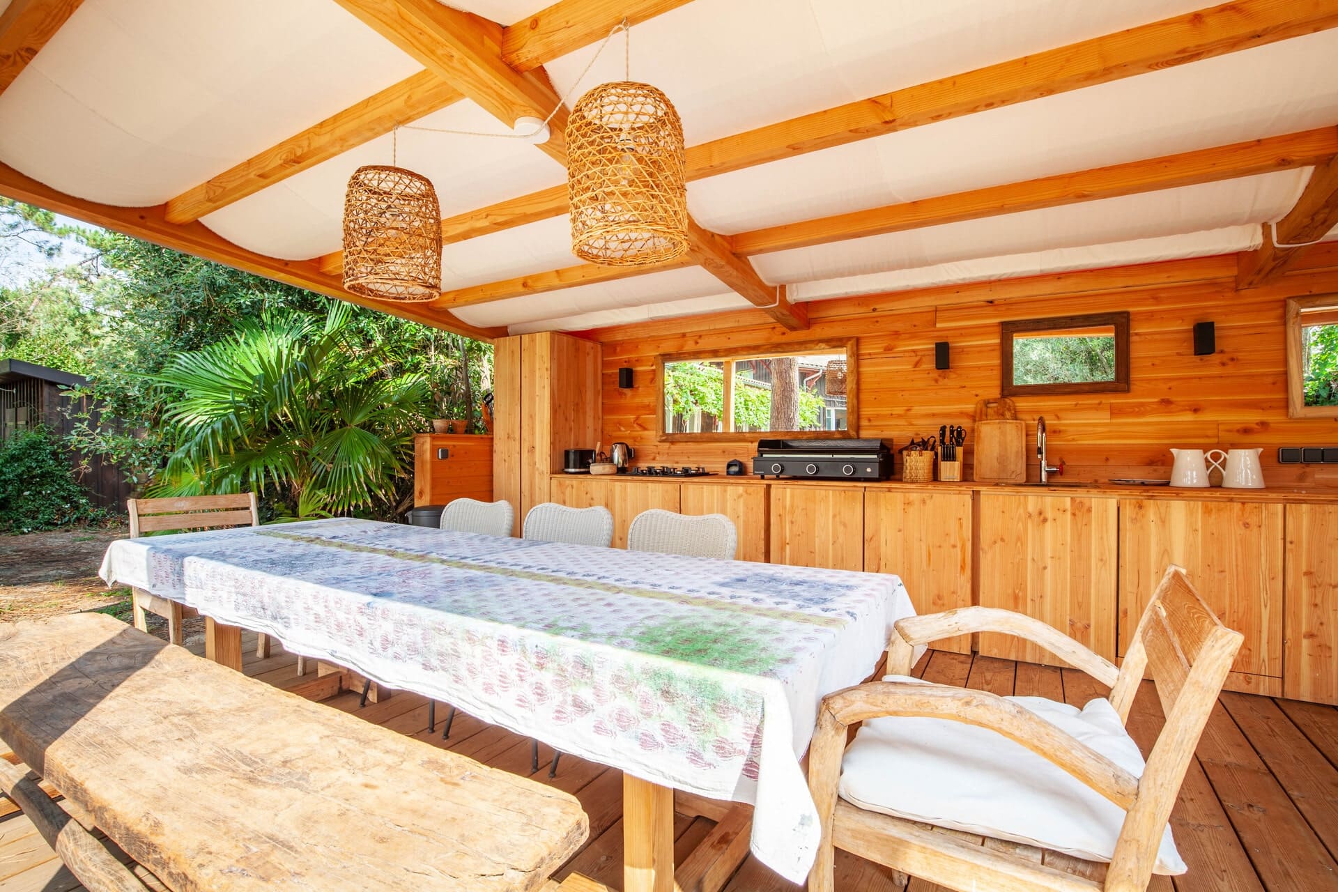 Entrez dans une sublime retraite à la Villa des Oiseaux, située à Cap Ferret, dans le Sud-Ouest de la France. Cette magnifique propriété, d’une superficie de 220 m², offre un refuge idéal pour jusqu’à 10 voyageurs, répartis dans 5 chambres, chacune équipée de sa propre salle de bain.