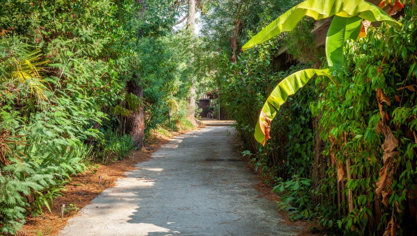 L’extérieur de la villa, imprégné d’une atmosphère champêtre et traditionnelle, se marie parfaitement avec l’élégance simple de sa décoration intérieure.