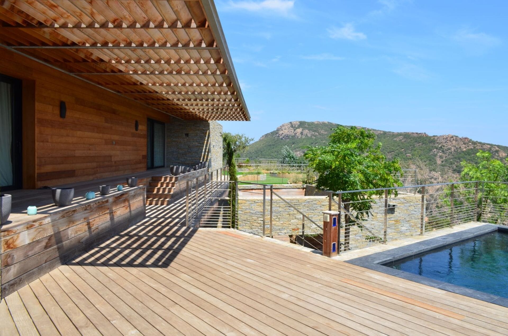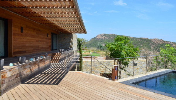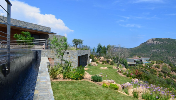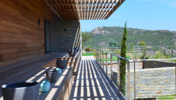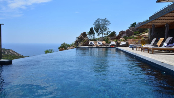 La villa de luxe Glya, située à Porto-Vecchio, en Corse, est un véritable joyau, offrant une splendide vue sur la mer et la montagne.