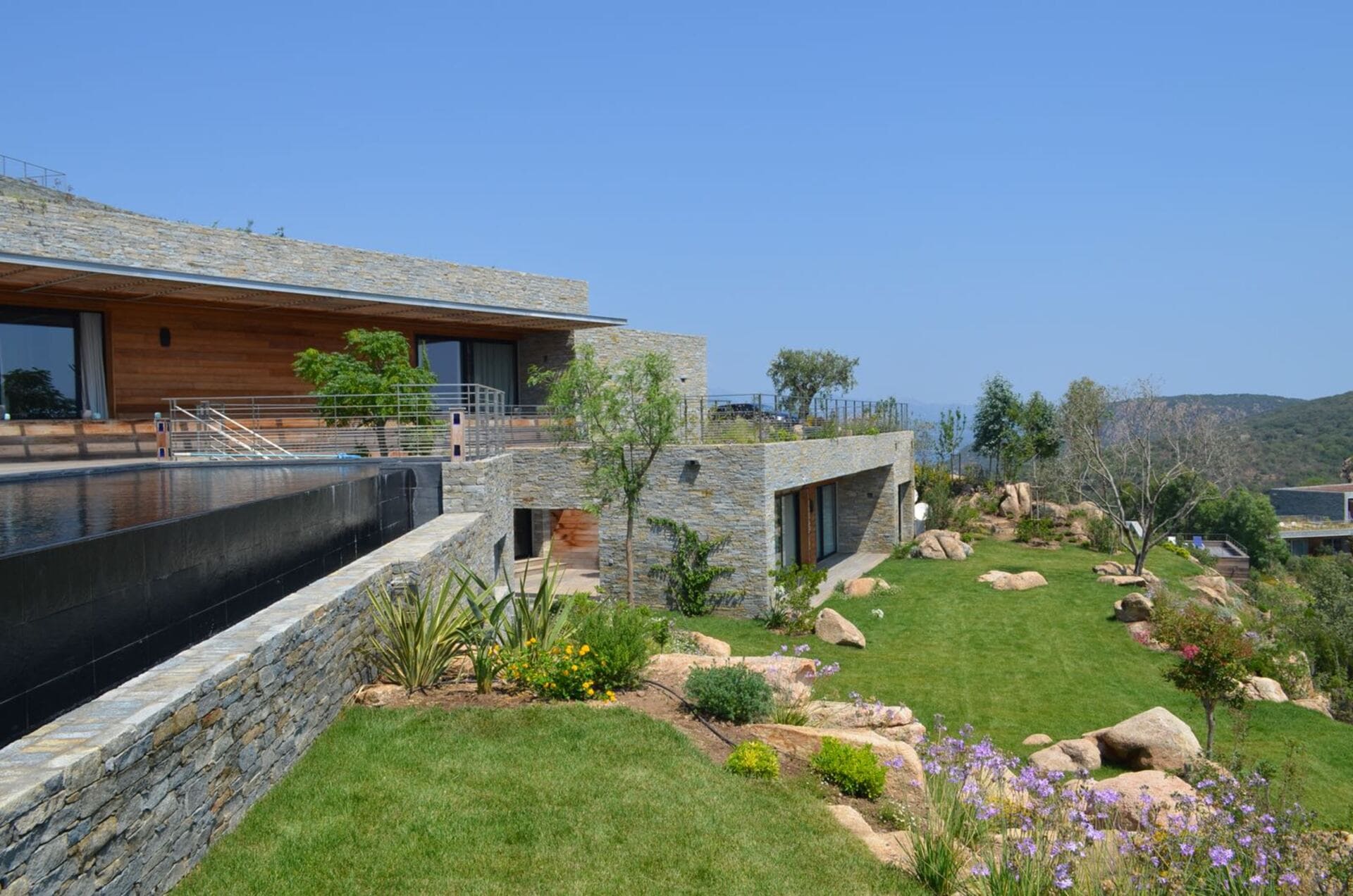 La villa de luxe Glya, située à Porto-Vecchio, en Corse, est un véritable joyau, offrant une splendide vue sur la mer et la montagne.