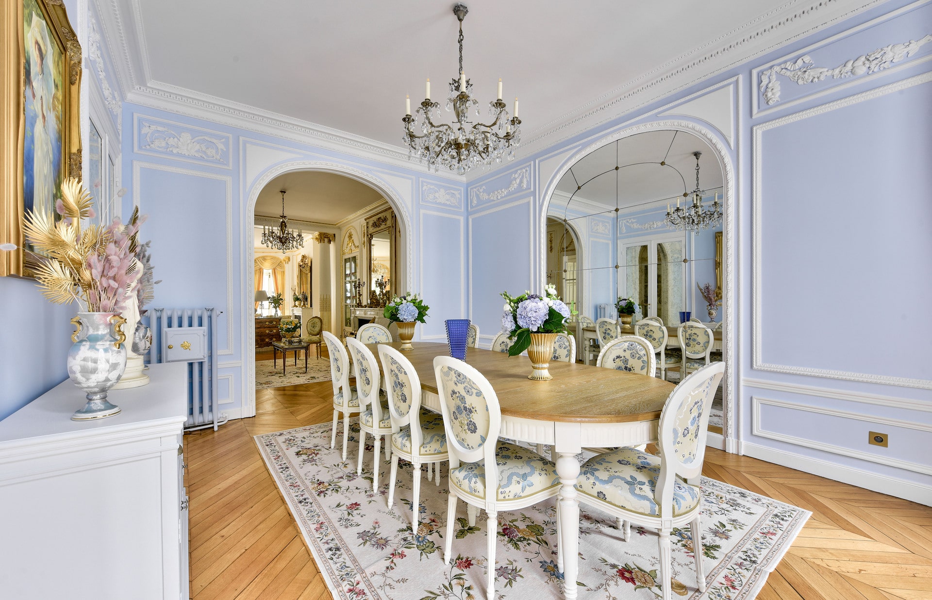 Chaque détail de notre espace a été soigneusement pensé pour offrir une immersion authentique dans l’histoire et la culture parisiennes. Des miroirs dorés somptueux, des meubles anciens aux lustres étincelants, en passant par les œuvres d’art et les moulures faites à la main, chaque élément contribue à créer une atmosphère unique.