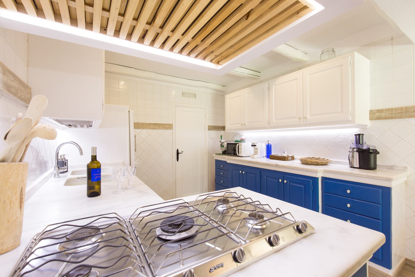 Le salon d’été, spacieux et baigné de lumière, évoque les plages sauvages de l’île blanche, invitant à de véritables moments de détente en famille ou entre amis. La cuisine ouverte, entièrement équipée, ravira les esprits gourmets désireux de préparer des repas aux saveurs méditerranéennes dans un cadre convivial.