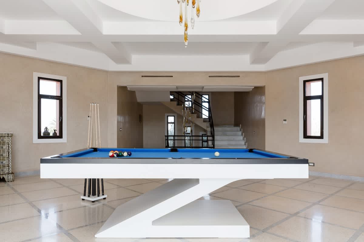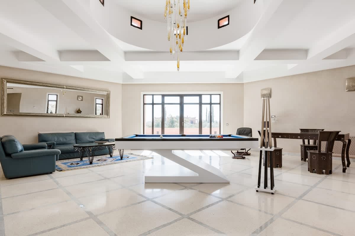 Salon ouvert avec billard.