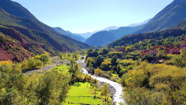 Vue à 360 degrés sur les montagnes de l'Atlas et des couchers de soleil spectaculaires.