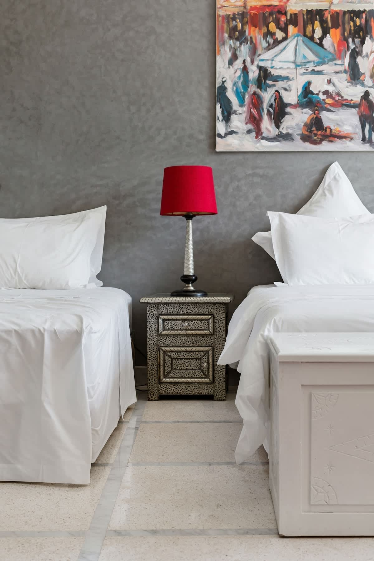 Deux chambres donnant sur les terrasses.