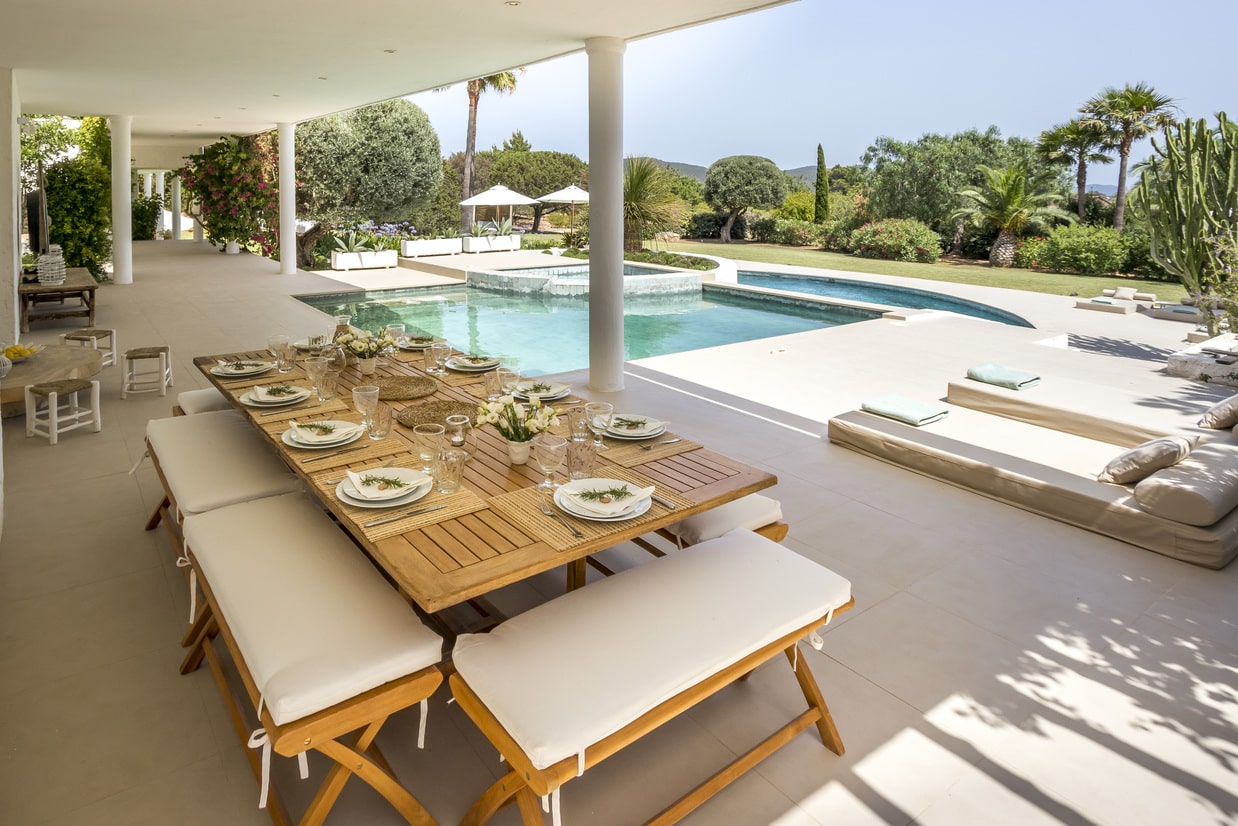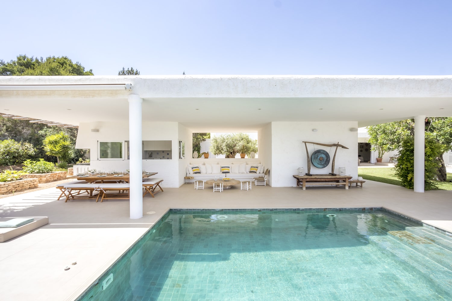Située à quelques minutes des plus belles plages de l’île — Es Torrent, le Scudo et la Marinella —, la Villa La Tropicale est le point de départ idéal pour explorer les paysages sauvages et les criques cristallines d’Ibiza.