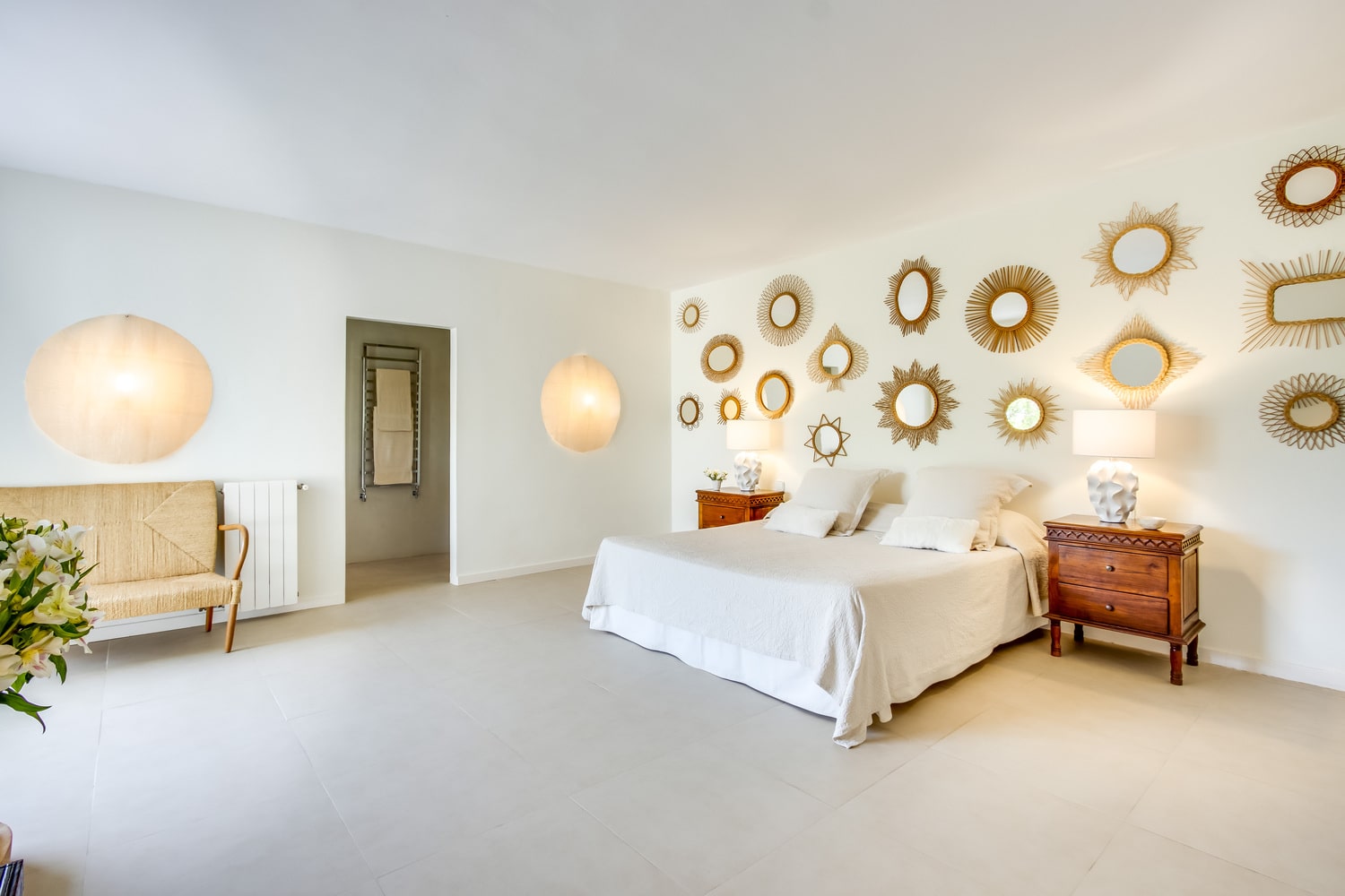 Les 6 chambres spacieuses disposent chacune de leur salle de bain attenante, offrant à chaque invité confort et intimité. Dès l’entrée, l’architecture moderniste et lumineuse séduit par son équilibre entre lignes épurées et touches bohèmes inspirées des voyages. Les matériaux naturels, les objets exotiques et les teintes douces composent une atmosphère apaisante et raffinée.