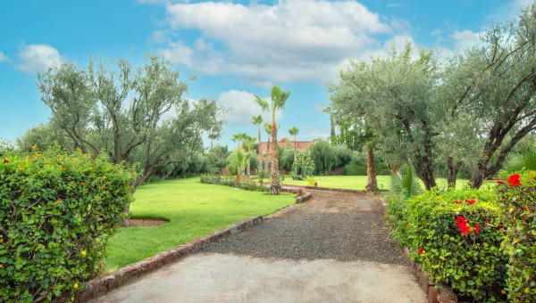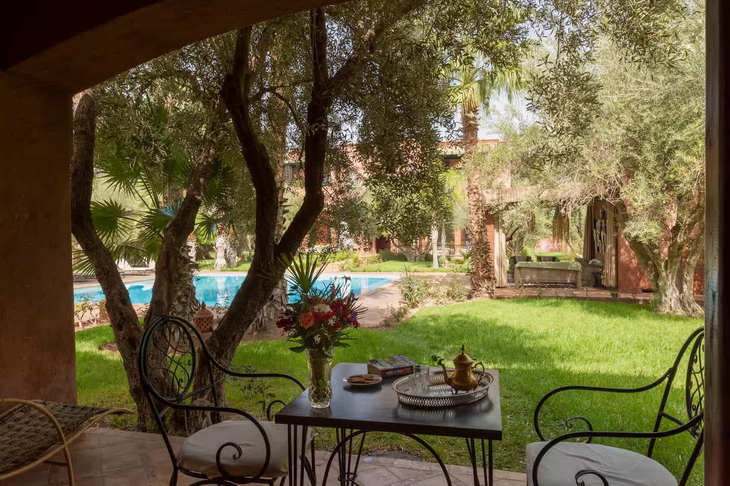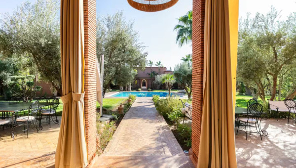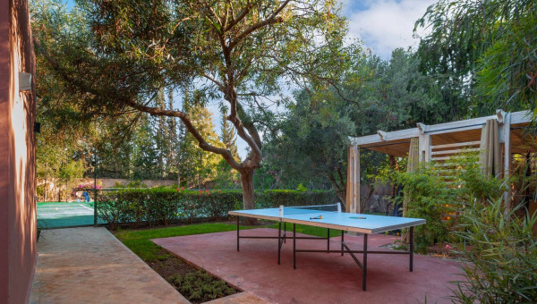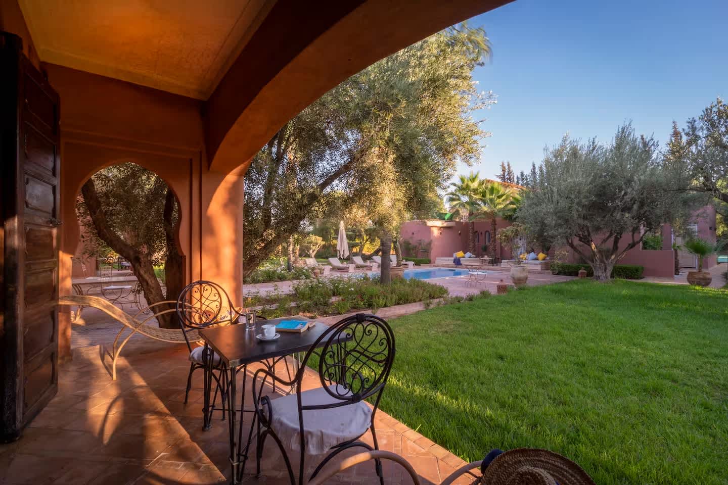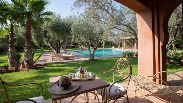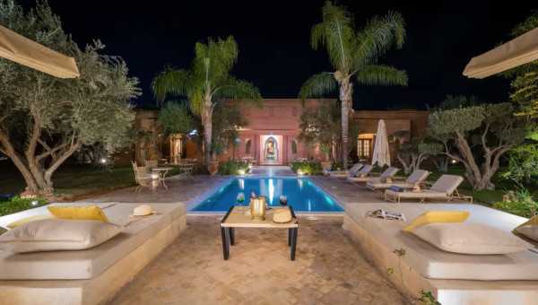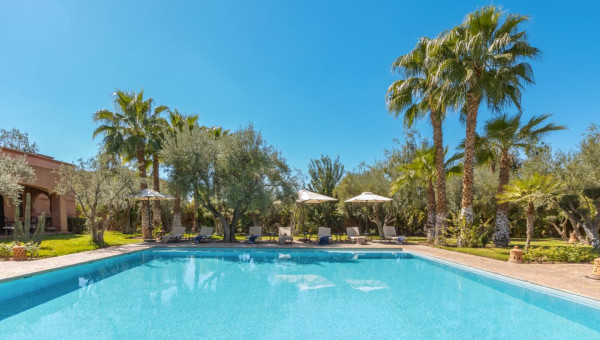 Nichée au cœur d’un magnifique parc privé, entre oliviers majestueux et palmiers élancés, la villa offre une perspective magique sur le riad, les deux piscines et le spa. La première piscine, aux dimensions impressionnantes, vous accueille dans un cadre convivial, agrémenté de transats sous l’ombre bienveillante des oliviers et de parasols. La seconde, plus intime, vous réserve une expérience chauffée même en hiver, garantissant des moments de relaxation absolue.
