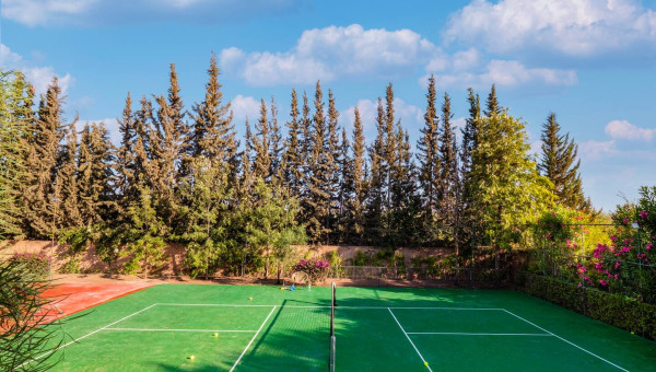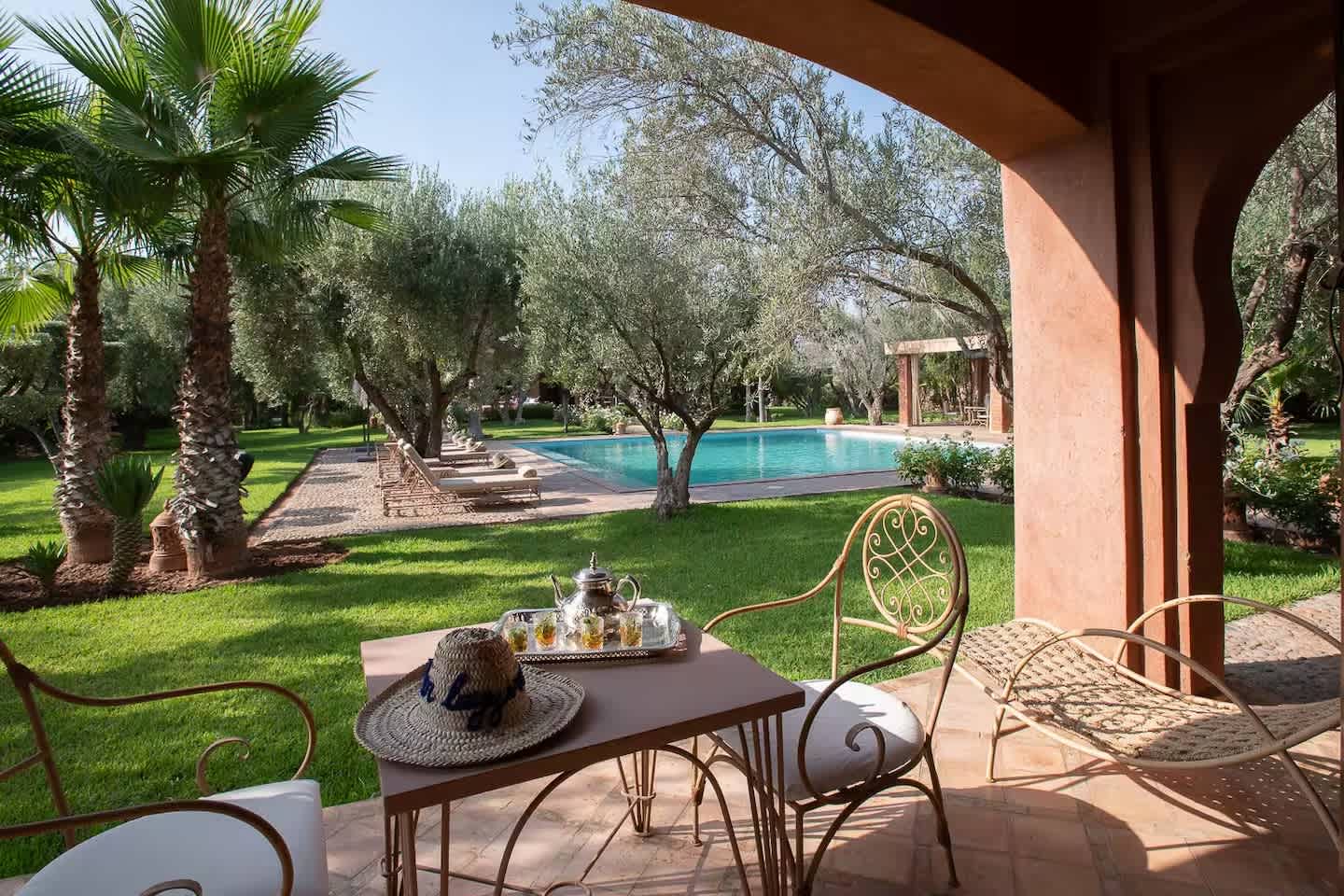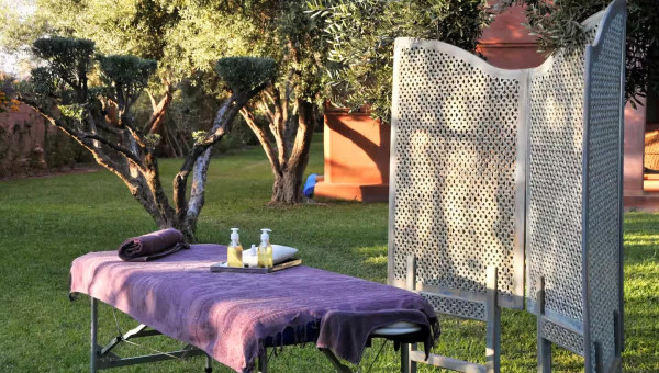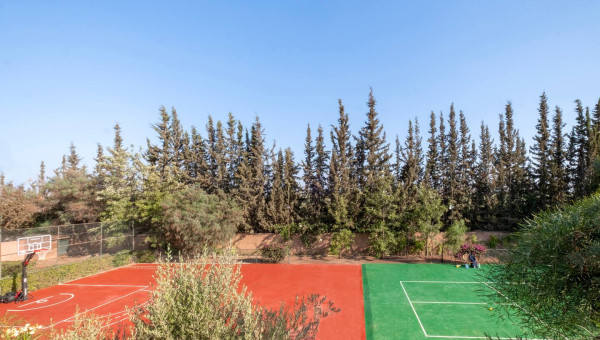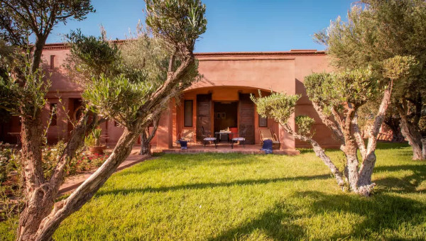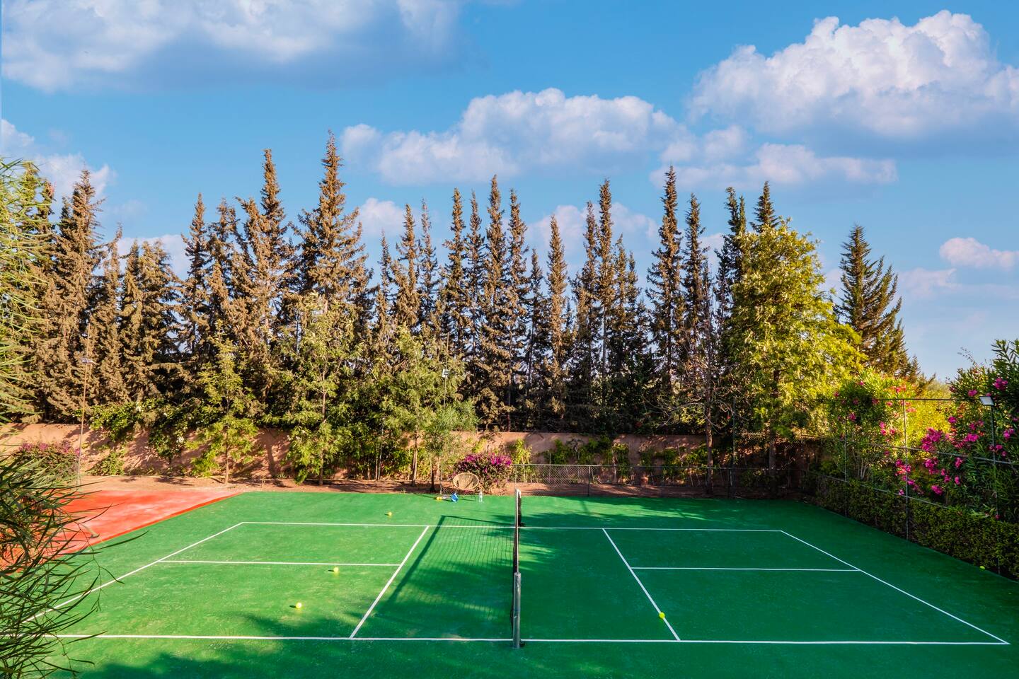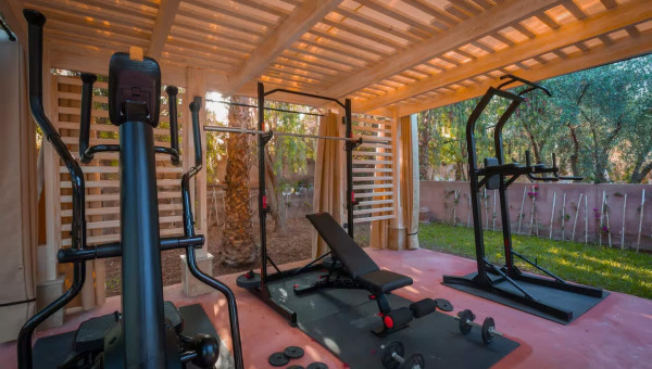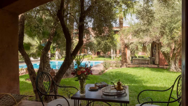 Nichée au cœur d’un magnifique parc privé, entre oliviers majestueux et palmiers élancés, la villa offre une perspective magique sur le riad, les deux piscines et le spa. La première piscine, aux dimensions impressionnantes, vous accueille dans un cadre convivial, agrémenté de transats sous l’ombre bienveillante des oliviers et de parasols. La seconde, plus intime, vous réserve une expérience chauffée même en hiver, garantissant des moments de relaxation absolue.