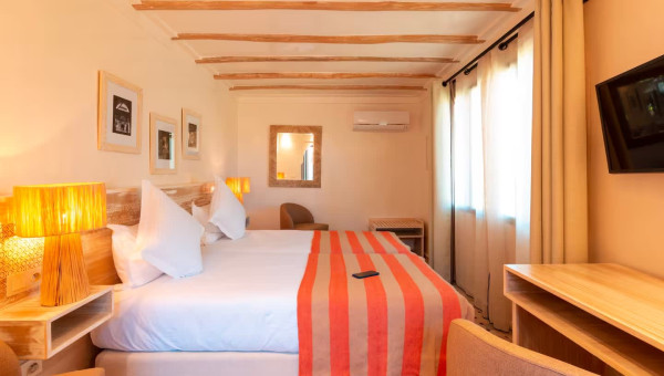- 4 suites de luxe (40 m²) : lit king-size ou twin beds, dressing sécurisé, TV/DVD, salle de bain complète, terrasse privée avec vue piscine