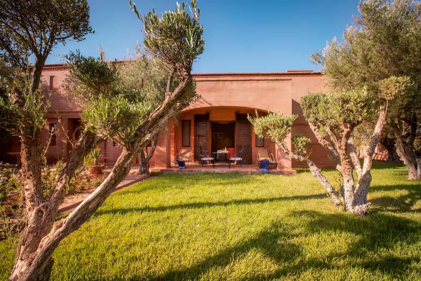Nichée au cœur d’un magnifique parc privé, entre oliviers majestueux et palmiers élancés, la villa offre une perspective magique sur le riad, les deux piscines et le spa. La première piscine, aux dimensions impressionnantes, vous accueille dans un cadre convivial, agrémenté de transats sous l’ombre bienveillante des oliviers et de parasols. La seconde, plus intime, vous réserve une expérience chauffée même en hiver, garantissant des moments de relaxation absolue.