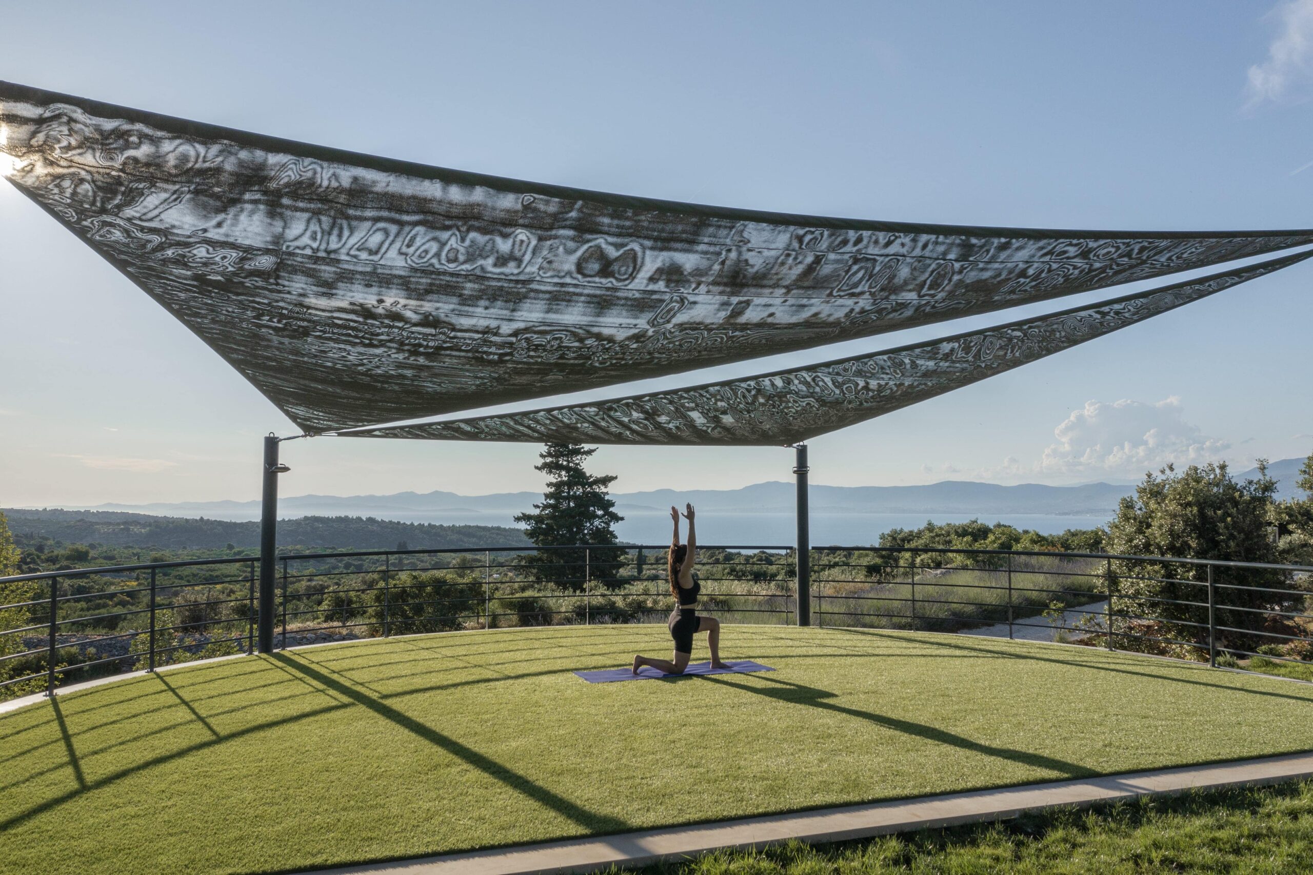 Plateforme de Yoga en Plein Air : entourée d’oliveraies et de champs de lavande, pouvant également servir pour des cérémonies de mariage. Voiles d’ombre installées. Partagée avec la Villa Johanna.