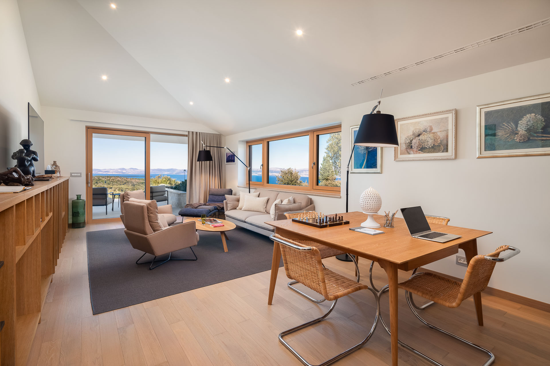 La villa est à environ 1,5 kilomètre de la côte en ligne droite et offre une vue imprenable sur la mer depuis sa position sur une colline. Les lumières de Split et les montagnes environnantes scintillent au loin la nuit. La villa se trouve à 8 km de Split.