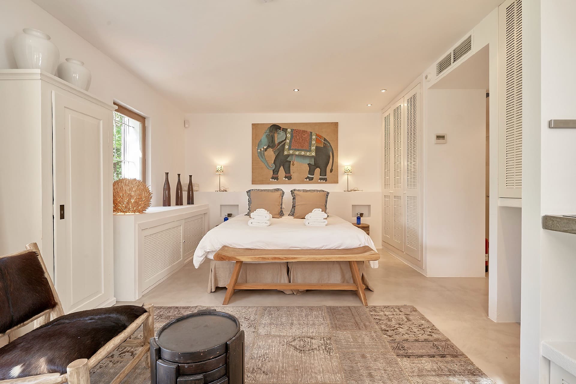 À l’extérieur, la terrasse aménagée surplombe un panorama pittoresque d’Ibiza. La piscine à débordement chauffée constitue un véritable appel à la détente, tandis que les espaces de repas en plein air offrent l’endroit rêvé pour dîner face aux couchers de soleil étincelants sur la Méditerranée. Pour les journées estivales, une cuisine extérieure vient compléter ces espaces de vie ouverts, parfaite pour des moments conviviaux entre amis ou en famille.