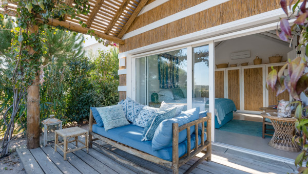 La villa de luxe Pepito, située dans un cadre unique à Comporta, au Portugal, avec son toit de pailles, ses rayures blanches et ses pergolas en bois, la villa Pepito a des airs de cabane de pêcheur cosy. Conçues pour accueillir, jusqu’à 8 personnes, cette villa de 200 m² propose un espace généreux pour un séjour inoubliable. Cette villa offre le confort à chaque invité avec ses 4 chambres luxueuses et ses 4 salles de bain confort.