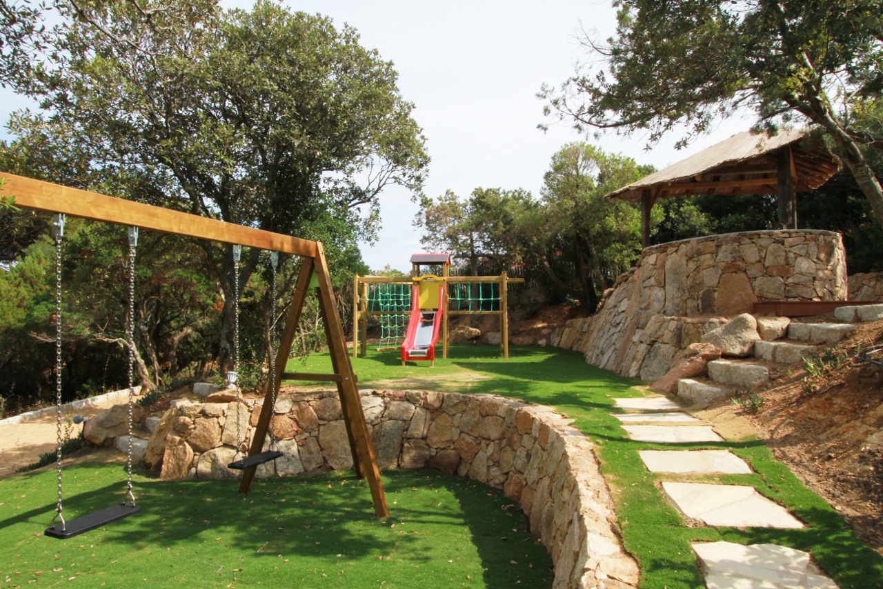 La nature luxuriante entoure la villa avec des oliviers centenaires et pour les enfants une magnifique aire de jeux.