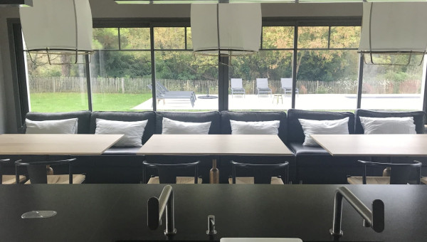 Profitez d’une cuisine professionnelle et ouverte, dotée d’un îlot central et d’une gamme complète d’appareils dont un four, un grille-pain, une bouilloire, une machine à glaçons, une hotte et de deux cafetières. Le lave-vaisselle facilite le nettoyage après vos repas, ainsi que d’un réfrigérateur et un congélateur pour répondre à vos besoins de stockage et de rafraichissements.