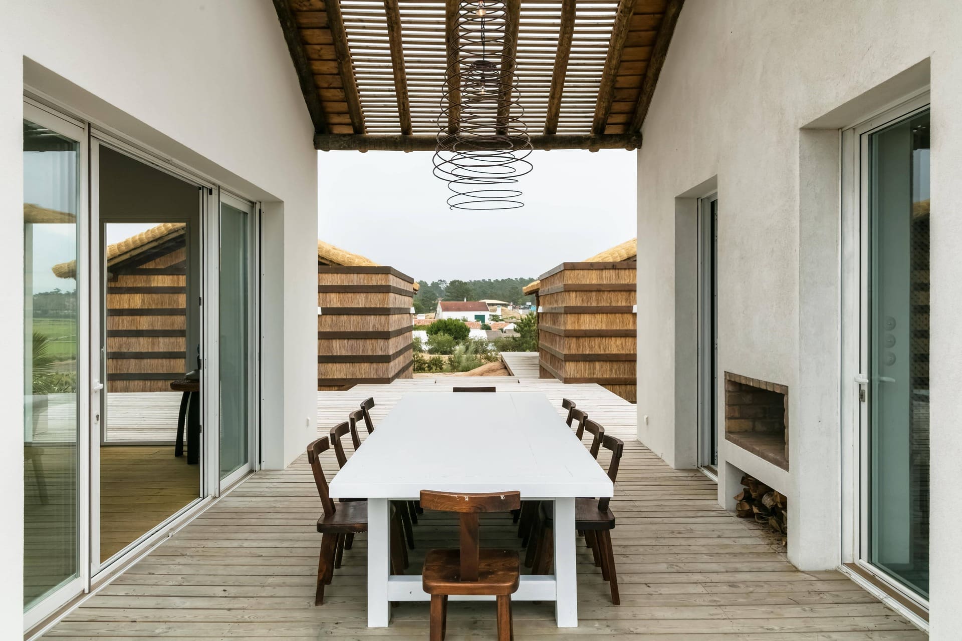 La terrasse en bois flotté vous convie à savourer le soleil portugais, avec une piscine rafraîchissante et panoramique. Tandis que les espaces de repas en plein air vous permettent de savourer des repas tout en admirant les magnifiques couchers de soleil.