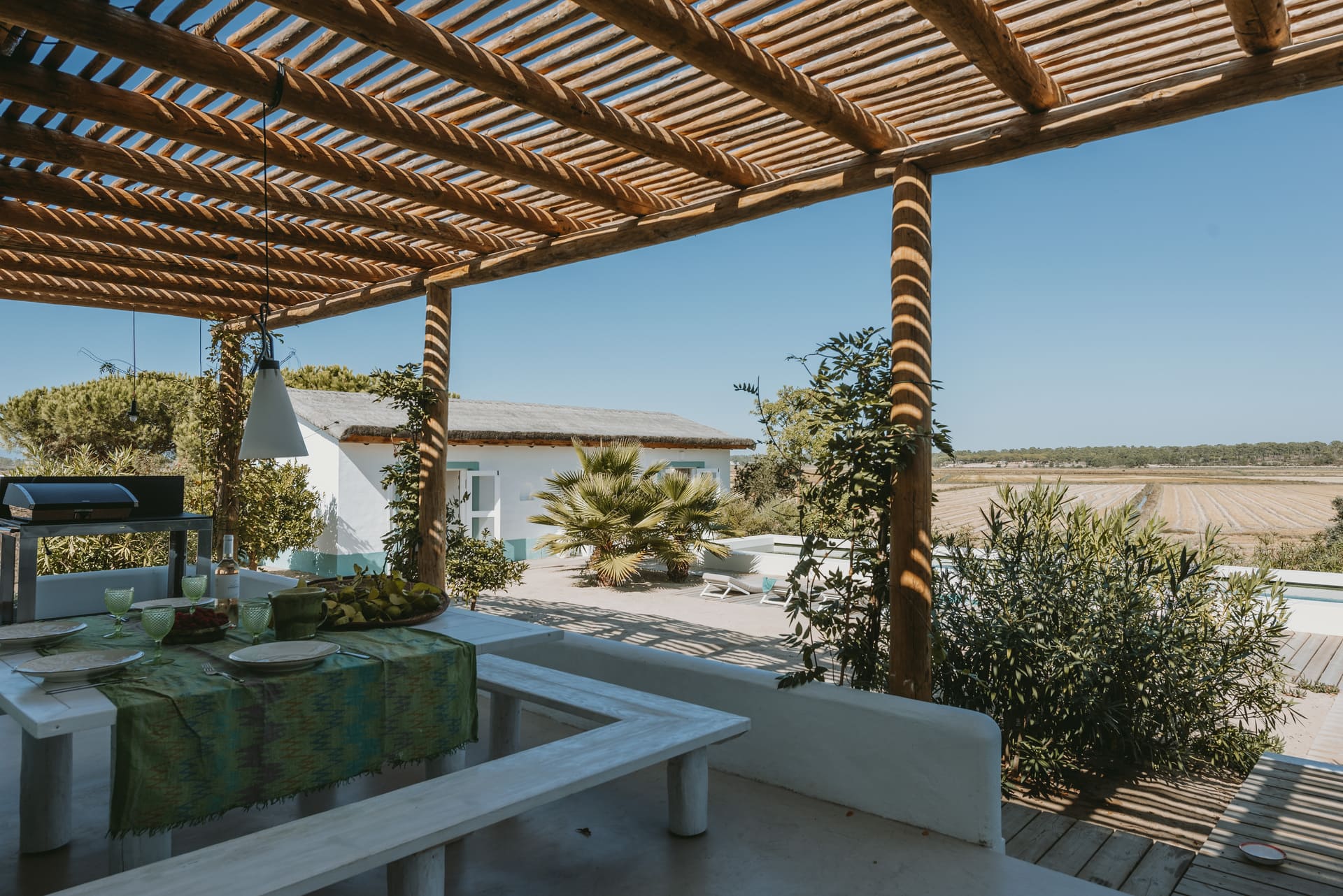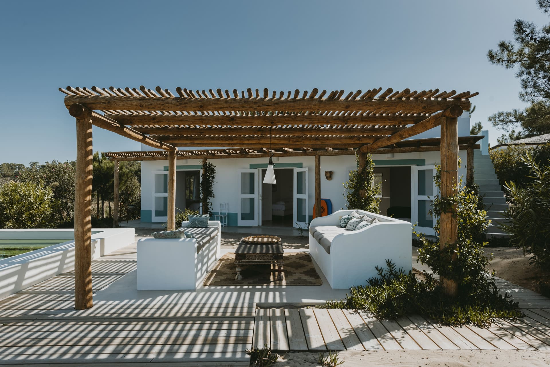 Nichée au cœur de Comporta, la Casa Turquoise est bien plus qu’une simple maison ; c’est un havre de paix où la tranquillité et la nature se rencontrent harmonieusement. Son design chic et minimaliste, rehaussé de subtiles touches de design, met en valeur la beauté naturelle qui l’entoure. La simplicité de son architecture permet à la nature d’être la véritable protagoniste, offrant ainsi un cadre idéal pour se détendre et se ressourcer.